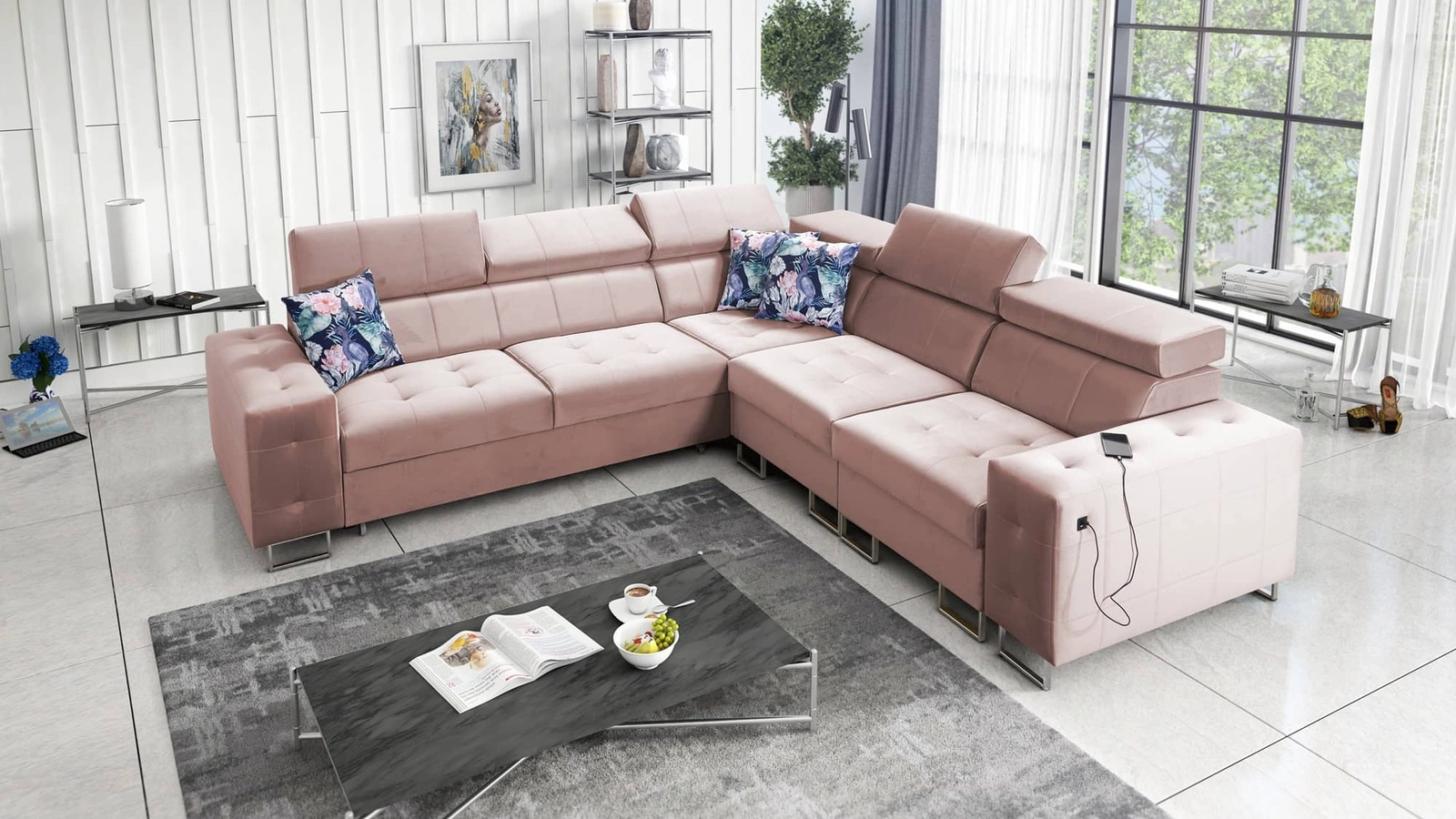 Rohová pohovka Hampton III v křemenné růžové barvě s nastavitelnými opěrkami hlavy je elegantní kus nábytku, který se skvěle hodí do jakéhokoli uspořádání ve vaší domácnosti.