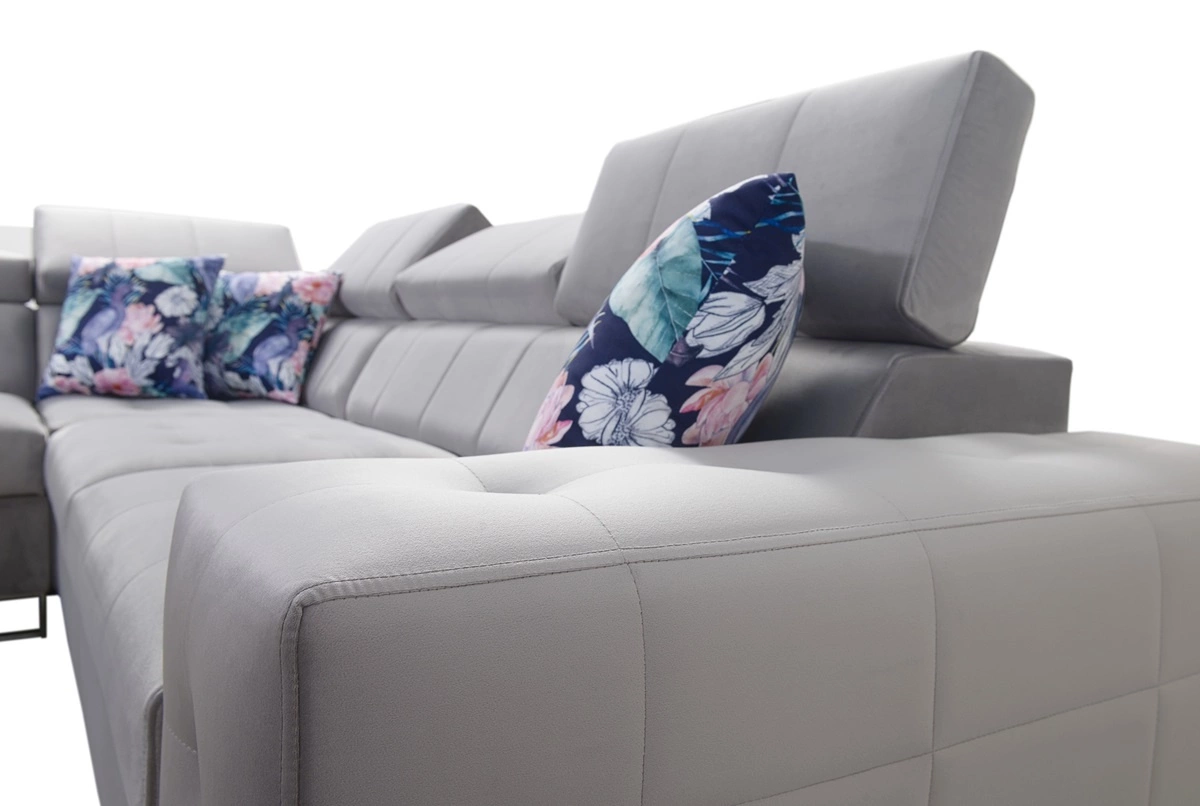 Rohová pohovka Hampton III v šedé barvě jasanu s nastavitelnými opěrkami hlavy je elegantní kus nábytku, který dokonale zapadne do jakéhokoli uspořádání ve vaší domácnosti.