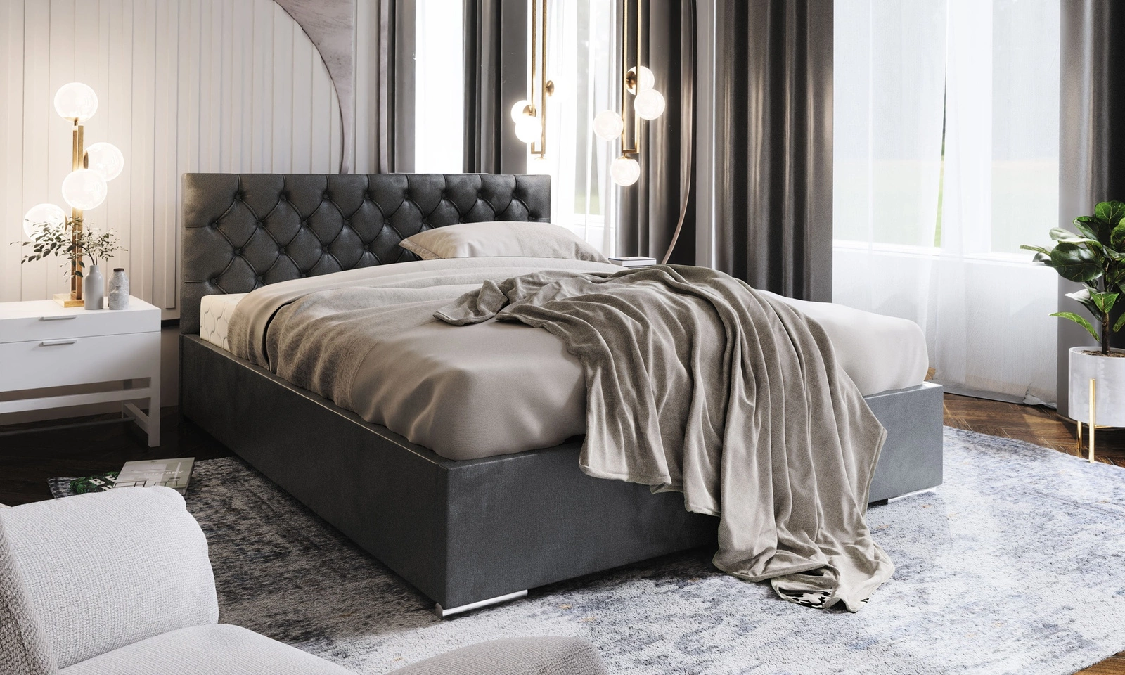 Lůžko z tkaniny typ samet Monolit 92 zaručuje maximální pohodlí a funkčnost pro každodenní relaxaci v ložnici. Tkanina je opatřena vrstvou hydrofobní, což zaručuje omezenou absorpci kapalin. Zajímavá struktura tkaniny dodává jedinečný charakter. Díky všem vlastnostem použité tkaniny si postel zachová svůj původní vzhled po dlouhou dobu. Konstrukce lůžka zajišťuje velkou stabilitu a pohodlí při používání. Rám postele je vyroben ze dřeva a nábytkové desky. Prošívané čelo postele upoutá pozornost a dodá jí zvláštní charakter.