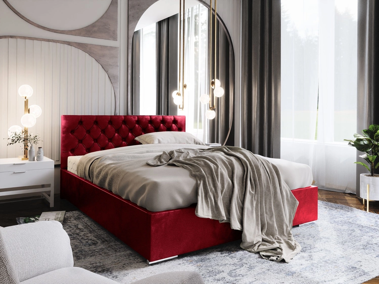 Čalouněná postel Alvorada 180x200 ve vínové barvě je ideálním řešením pro ložnice zařízené v moderním, skandinávském i klasickém stylu.