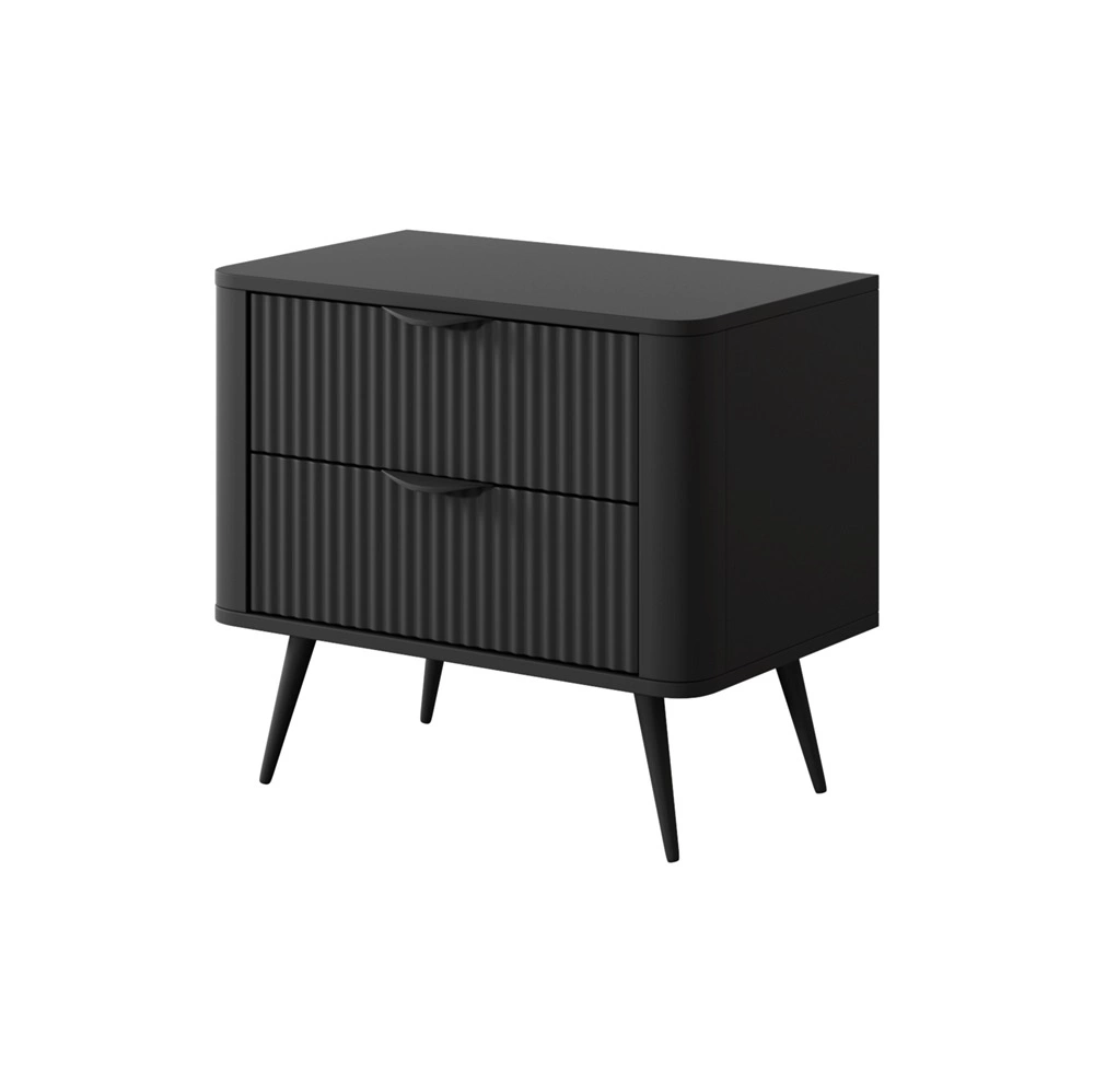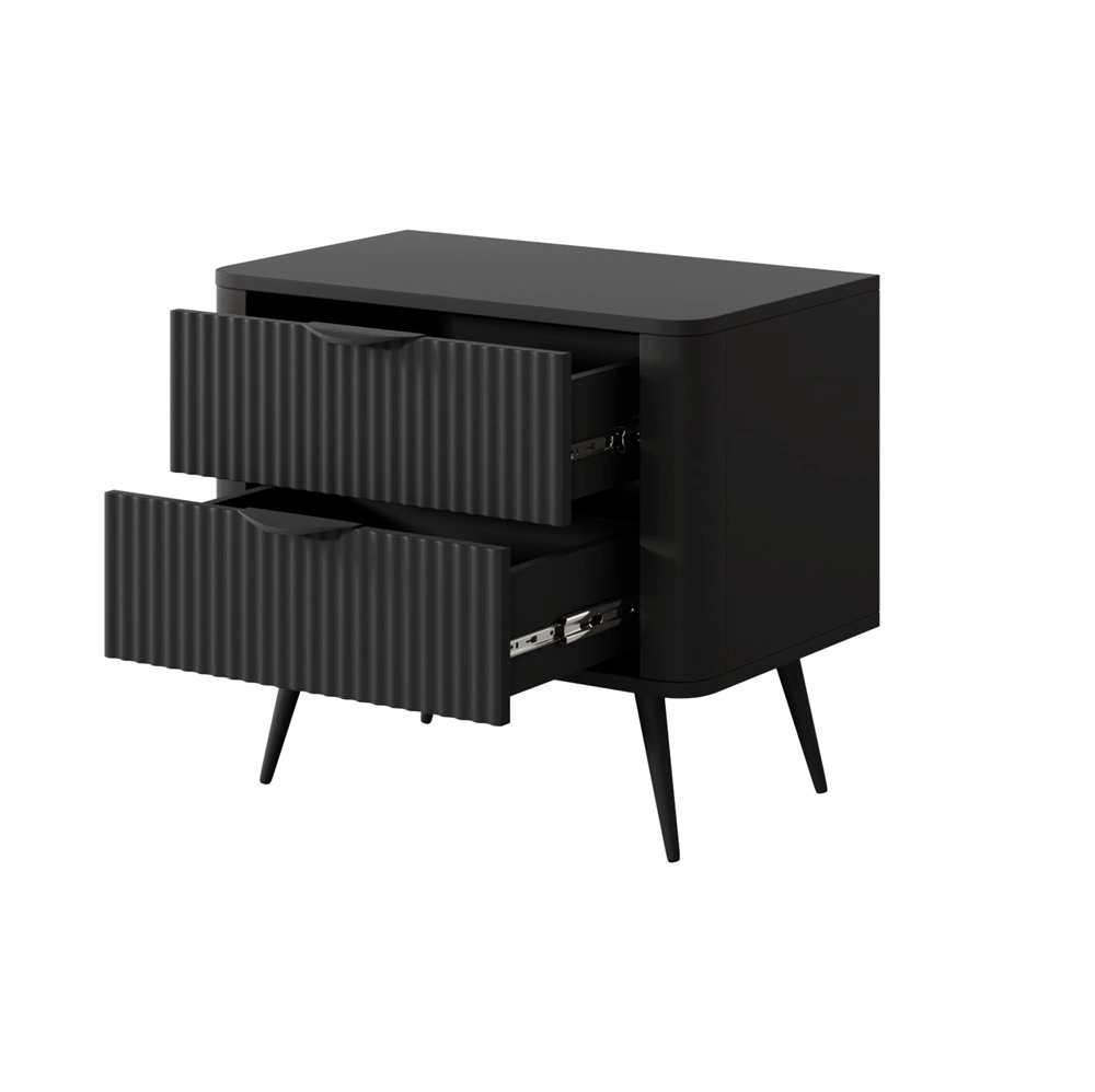 Noční stolek Lante černý stylová skříňka se zásuvkami ideální pro ložnice v glamour a skandinávském stylu originální tvar z masivu
