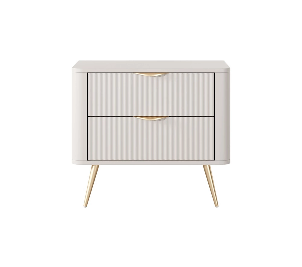 Noční stolek Lante béžový Stylová skříňka se zásuvkami ideální pro ložnice v glamour a skandinávském stylu Originální tvar masivu