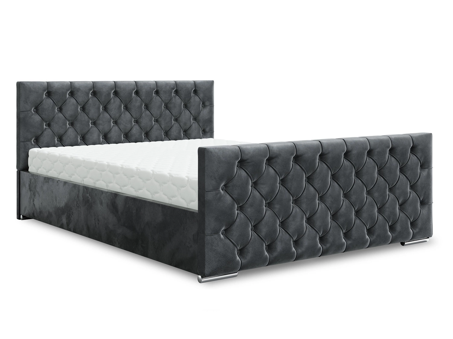 Čalouněná postel Viamao 140x200 v grafitové barvě s úložným boxem v moderním skandinávském stylu s prošívaným čelem a nohama