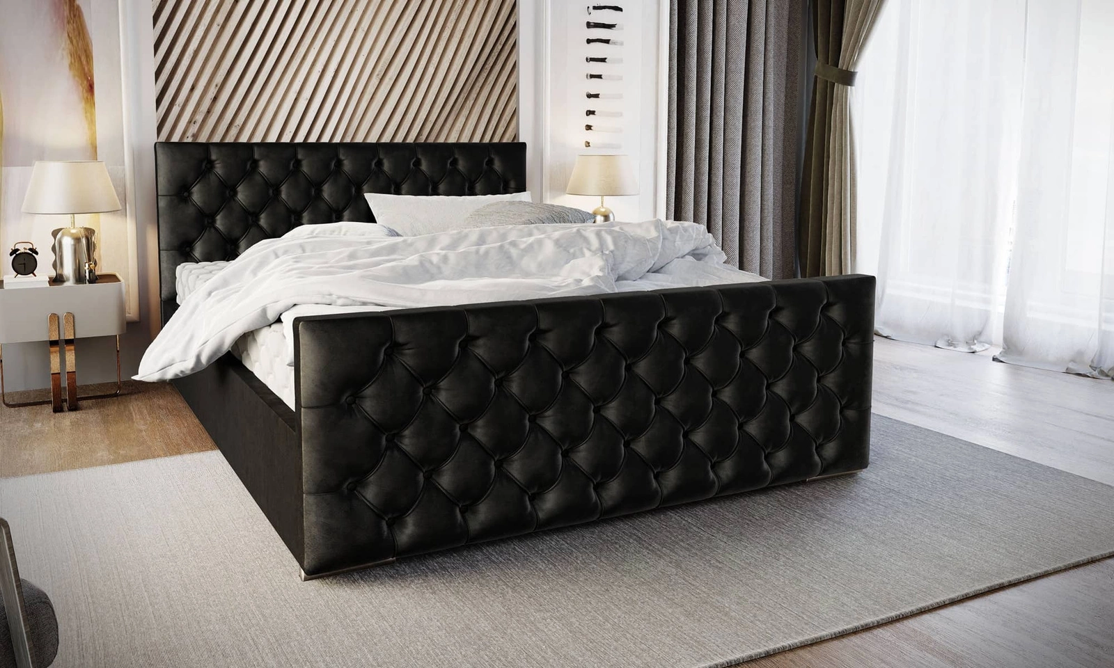 Lůžko z tkaniny typ samet Monolit 97 zaručuje maximální pohodlí a funkčnost pro každodenní relaxaci v ložnici. Tkanina je opatřena vrstvou hydrofobní, což zaručuje omezenou absorpci kapalin. Zajímavá struktura tkaniny dodává jedinečný charakter. Díky všem vlastnostem použité tkaniny si postel zachová svůj původní vzhled po dlouhou dobu. Konstrukce lůžka zajišťuje velkou stabilitu a pohodlí při používání. Rám postele je vyroben ze dřeva a nábytkové desky. Prošívané čelo postele upoutá pozornost a dodá jí zvláštní charakter. Další výhodou je podnožka, která má prošívání jako čelo postele.