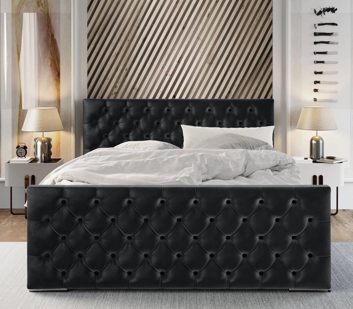 Čalouněná postel Viamao 180x200, grafitová, s úložným boxem v moderním skandinávském stylu s prošívaným čelem a nohama