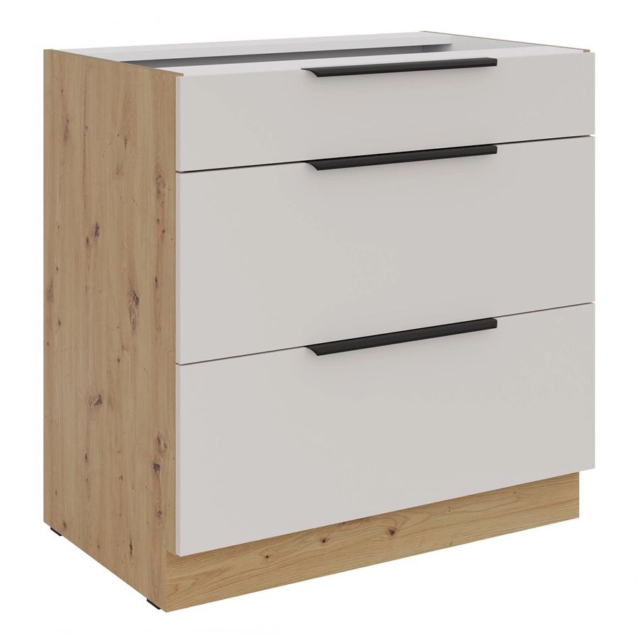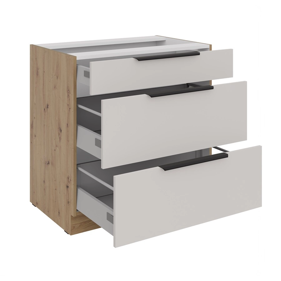 Kuchyňská skříňka se zásuvkami 80 cm Soela v barvě dub artisan / béžová patří do kategorie modulárního kuchyňského nábytku, ze kterého lze vytvořit libovolnou sestavu.