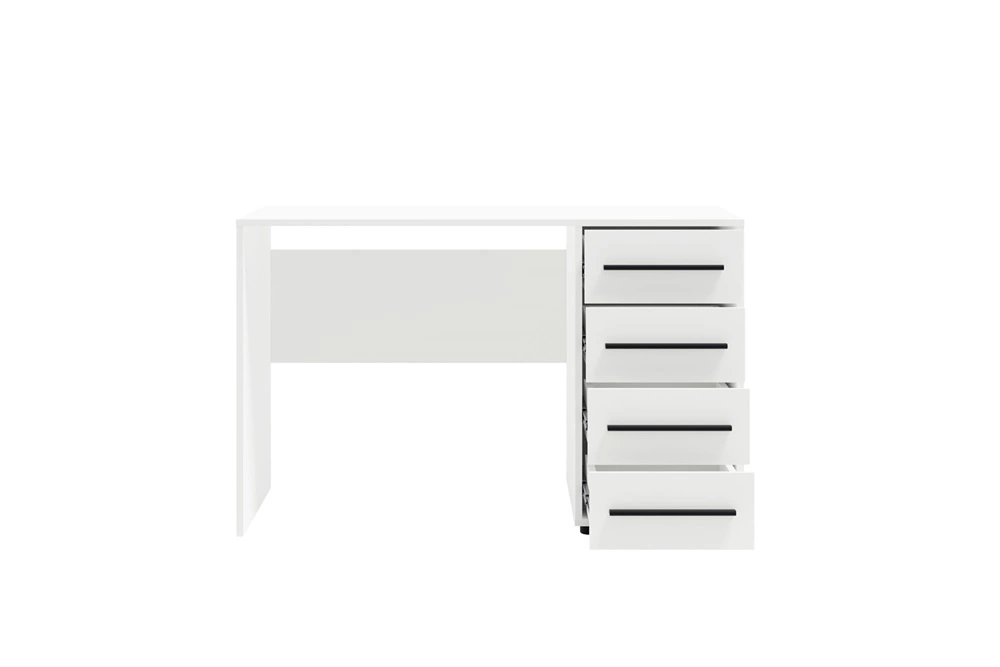 Stůl má ergonomickou konstrukci vrchní deskou a 4 zásuvky. Záruka rovných bílých stolů Maxione pohodlné a bezproblémové používání a trvanlivost celého nábytku po mnoho let používání. Nadčasová bílá barva dodá místnosti světlý a útulný dojem, takže stoly Maxione jsou vhodné jako psací stoly pro domácí kancelář nebo dětský stůl. Stůl se uplatní také jako toaletní stolek, který usnadní organizaci dámské kosmetiky a drobností.