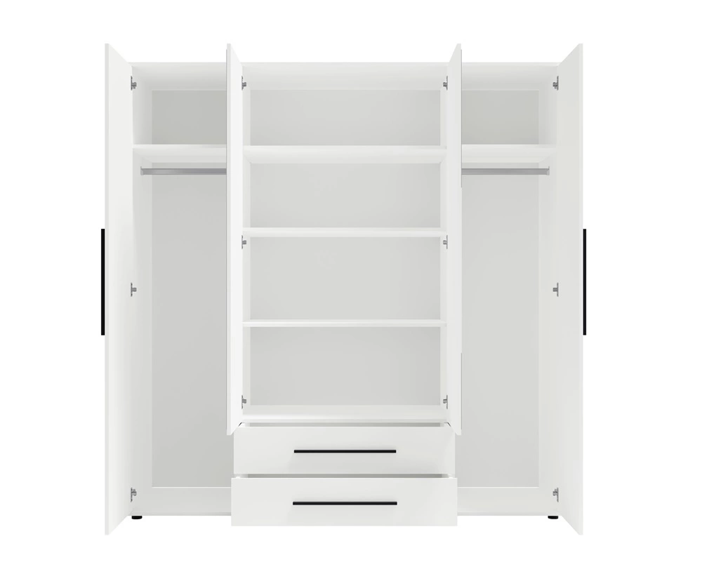 Zrcadlová skříňka je vyrobena ze 4 dvířka a 2 zásuvky. Šatní skříň v ložnici zaručuje pohodlné a bezproblémové používání a trvanlivost celého nábytku po mnoho let používání. Nadčasová bílá barva dodává místnosti světlý a útulný dojem, díky čemuž se v ní, skříň lze úspěšně použít jako zrcadlová šatní skříň do ložnice, jako šatní skříň do předsíně nebo jako šatní skříň do dětského pokoje dětský pokoj. Šatní skříň Maxione bude také skvělá volba pro pokoj pro mládež. Skvěle se hodí i jako šatní skříň do předsíně.