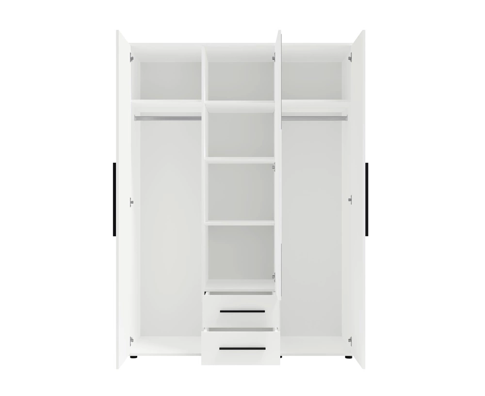 Zrcadlová šatní skříň je vyrobena ze 3 dveře a 2 zásuvky. Šatní skříň v ložnici zaručuje pohodlné a bezproblémové používání a trvanlivost celého nábytku po mnoho let používání. Klasická černá barva dodává místnosti eleganci a zvláštní nádech, skříň lze úspěšně použít jako zrcadlová šatní skříň do ložnice, jako šatní skříň do předsíně nebo jako šatní skříň do dětského pokoje dětský pokoj. Šatní skříň Maxione bude také skvělá volba pro pokoj pro mládež. Skvěle se hodí i jako šatní skříň do předsíně.