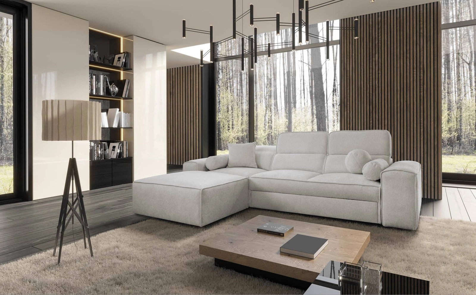 Podrobnosti o moderní rohové pohovce s funkcí spaní Viano