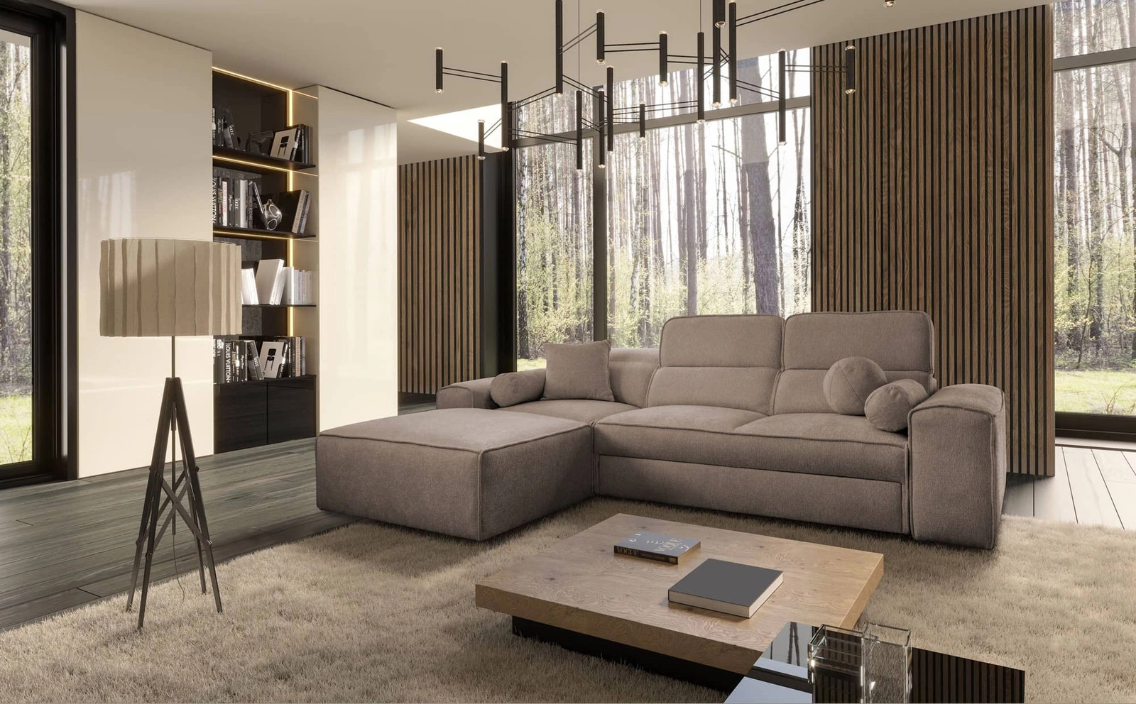 Podrobnosti o moderní rohové pohovce s funkcí spaní Viano
