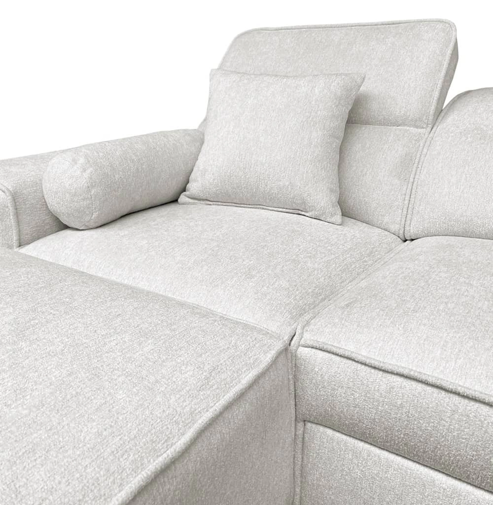 Rohová sedací souprava s funkcí spaní Viano krémová levá stylová rohová sedací souprava se zajímavým tvarem nastavitelné opěrky hlavy dekorativní polštáře