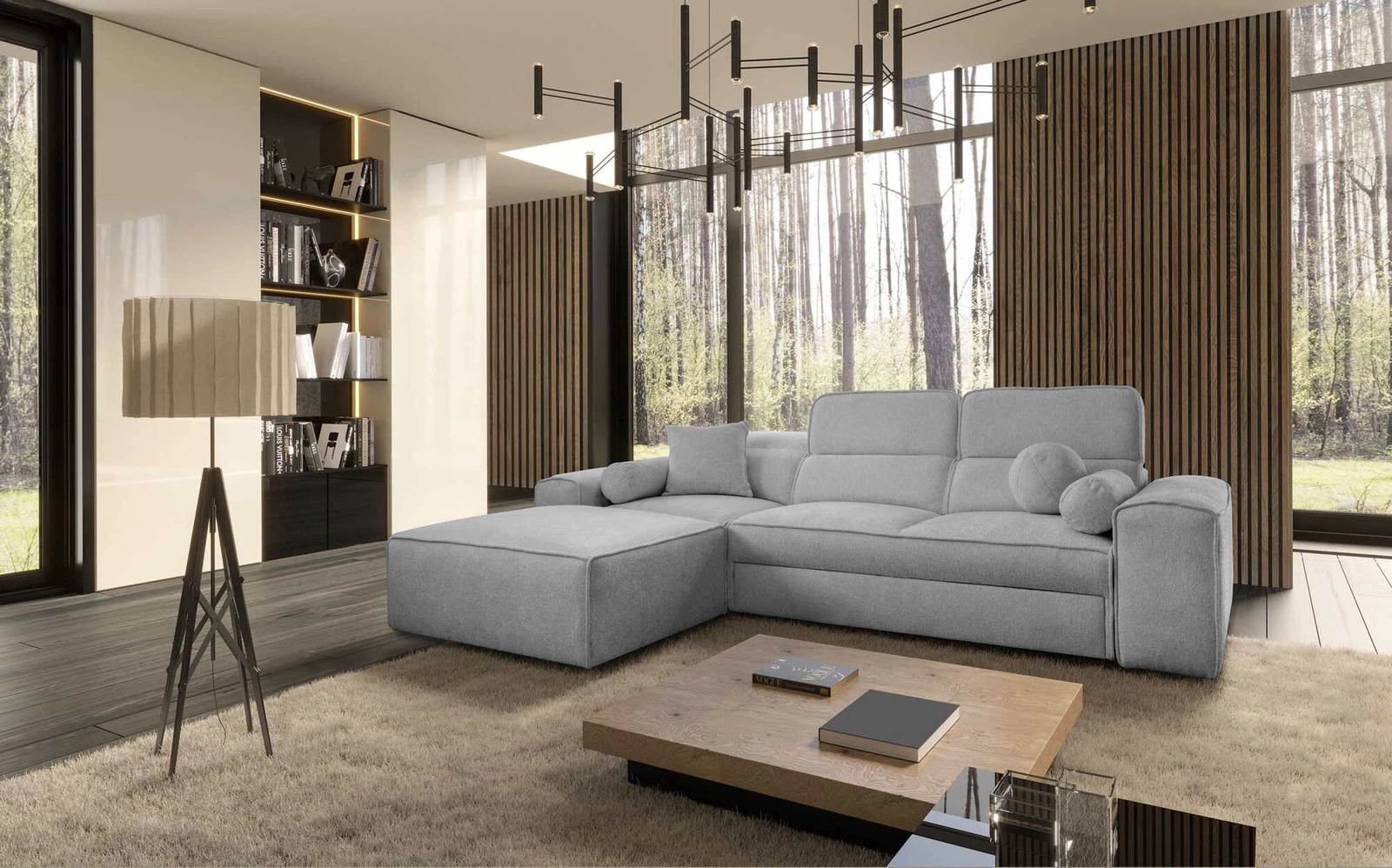 Podrobnosti o moderní rohové pohovce s funkcí spaní Viano
