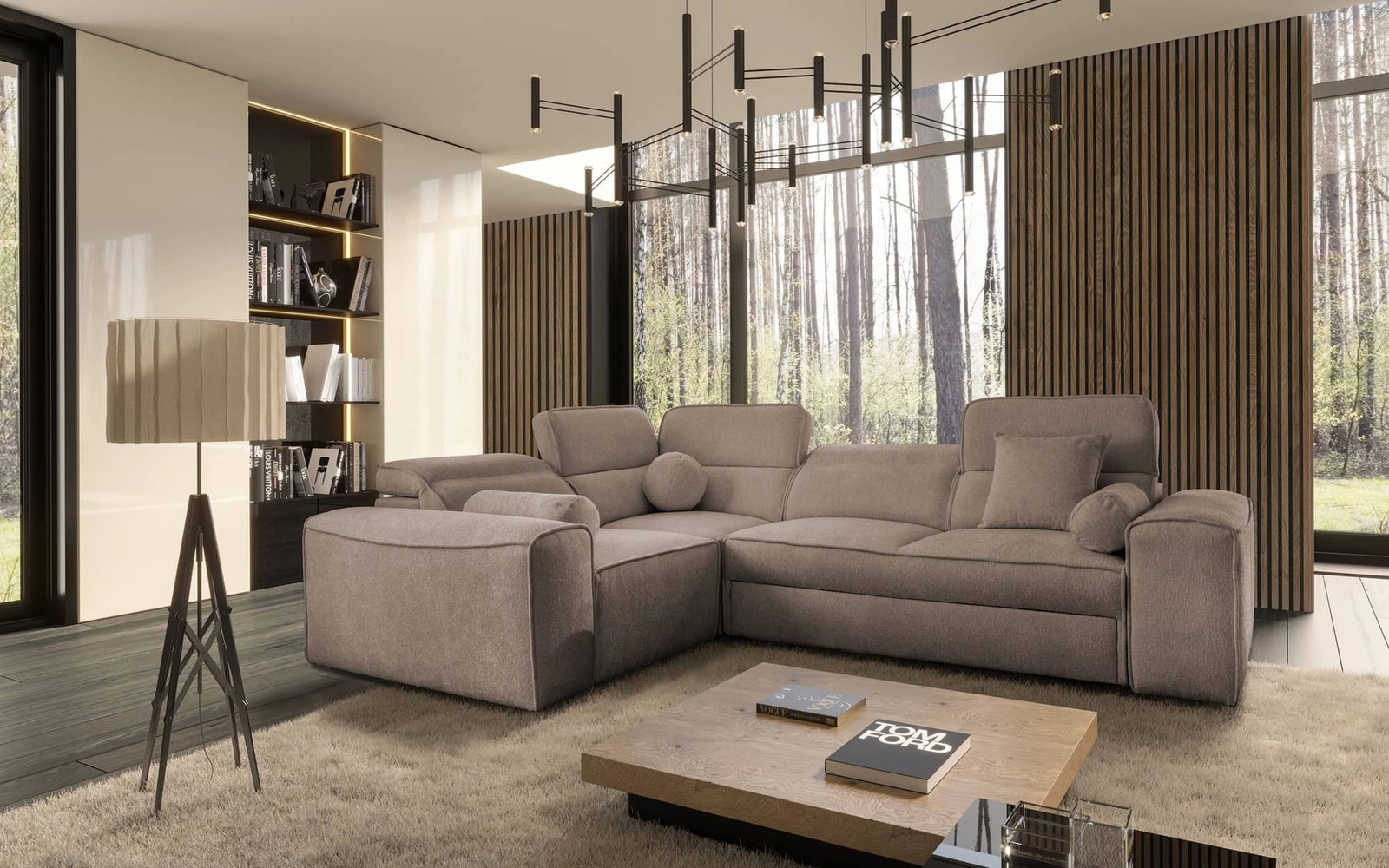 Rohová sedací souprava s funkcí spaní Viano II světle hnědá rohová sedací souprava v levém provedení, která se hodí do moderních interiérů