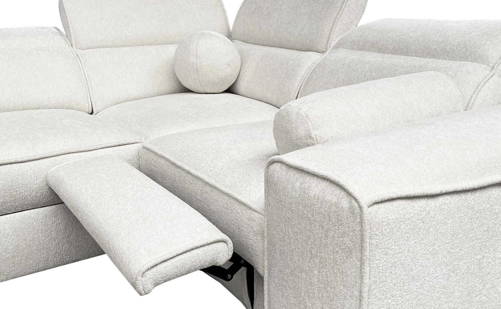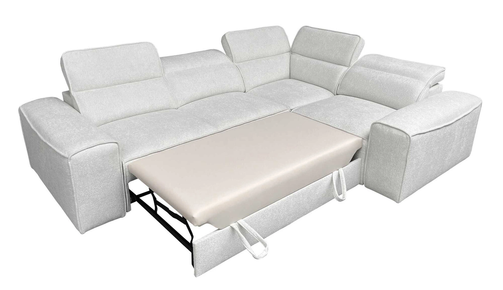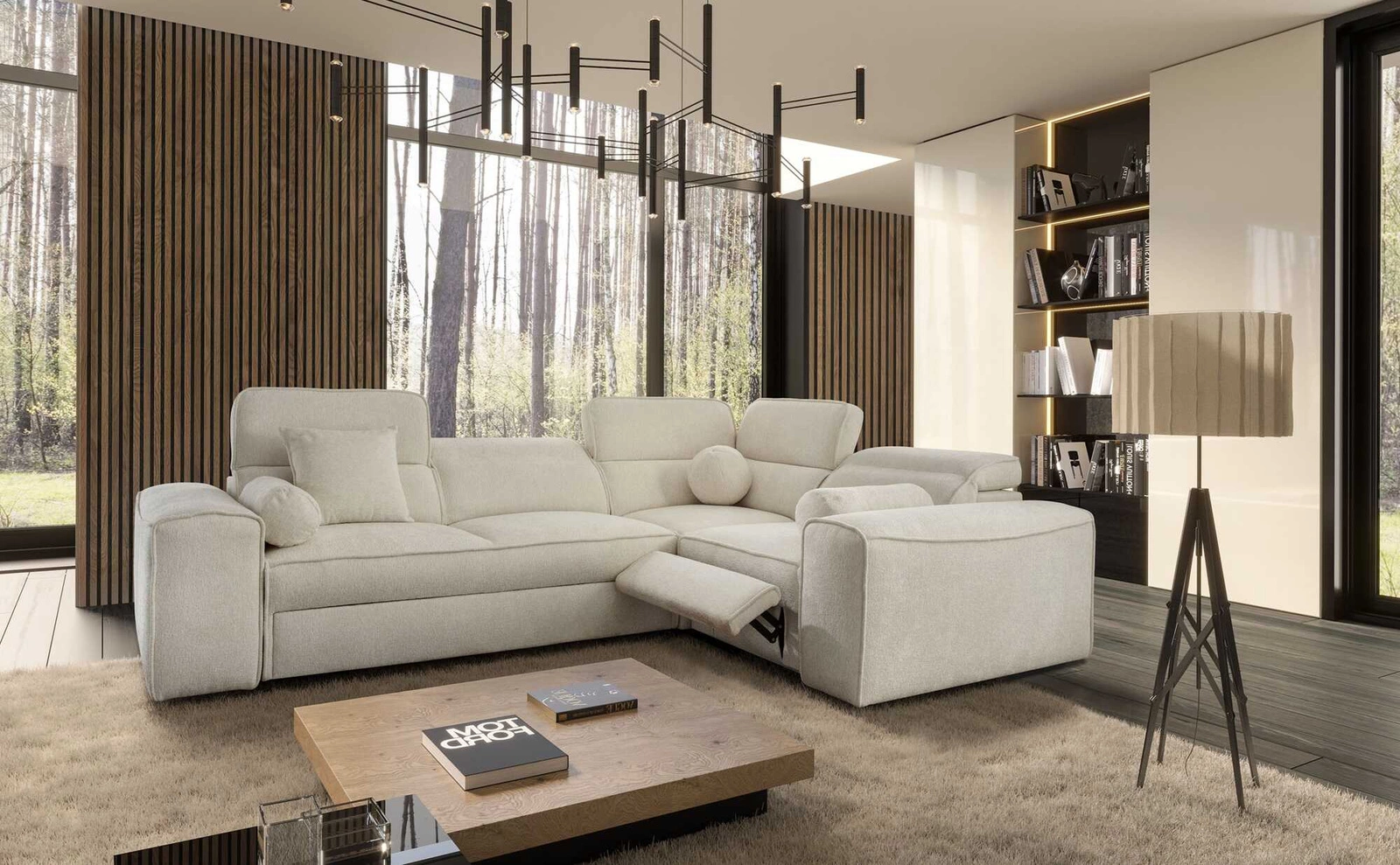 Rohová sedací souprava s funkcí spaní Viano II Lux krémová pravostranná designová rohová sedací souprava do obývacího pokoje s pohodlným výsuvným podnožníkem