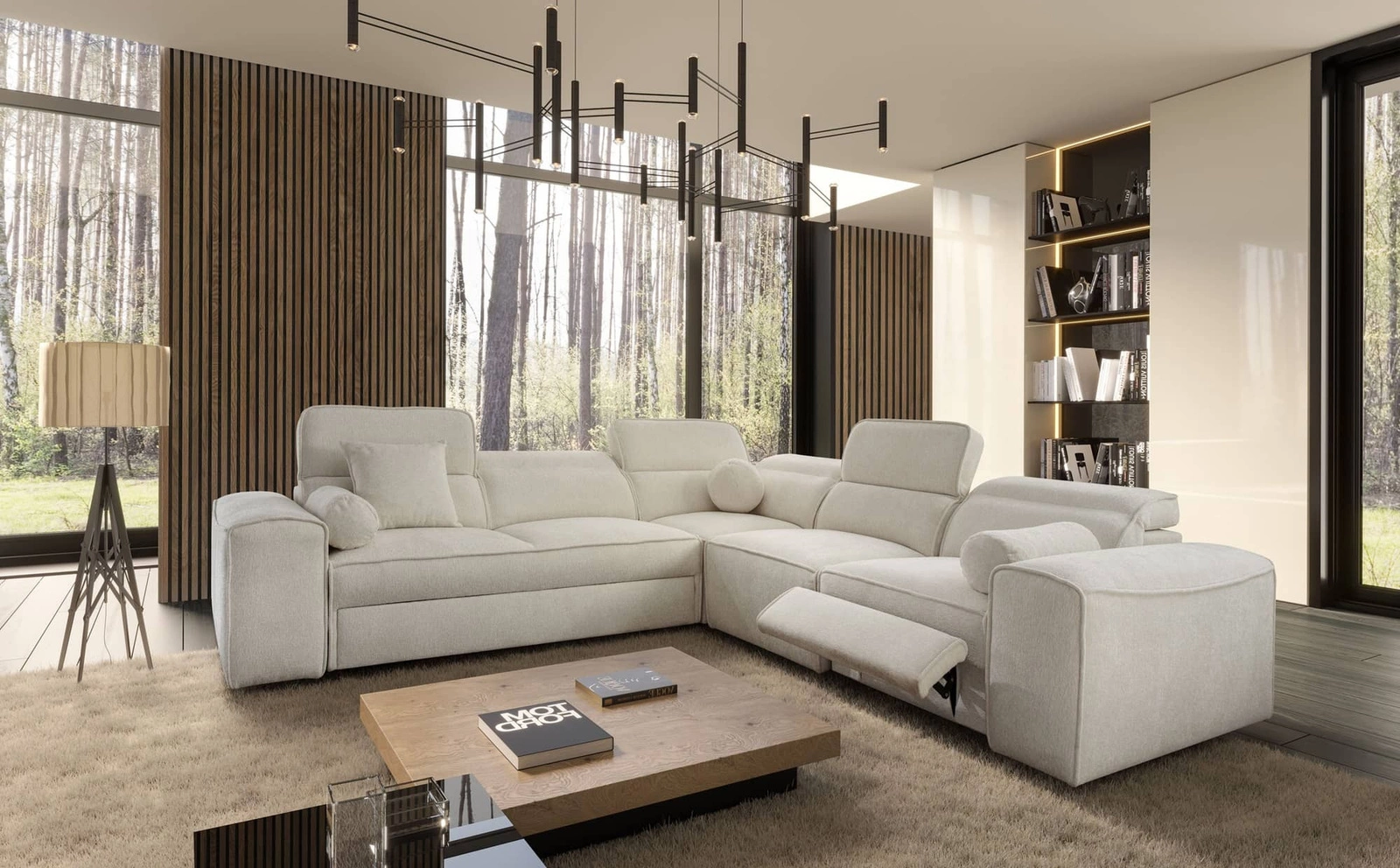 - Rohová sedací souprava Viano III Lux se vyznačuje mimořádnou všestranností a funkčností. Vysoce kvalitní tkanina s luxusní strukturou a estetickým vzhledem dodává exkluzivní vzhled. Výsuvná opěrka nohou zajistí pohodlný a relaxační odpočinek.