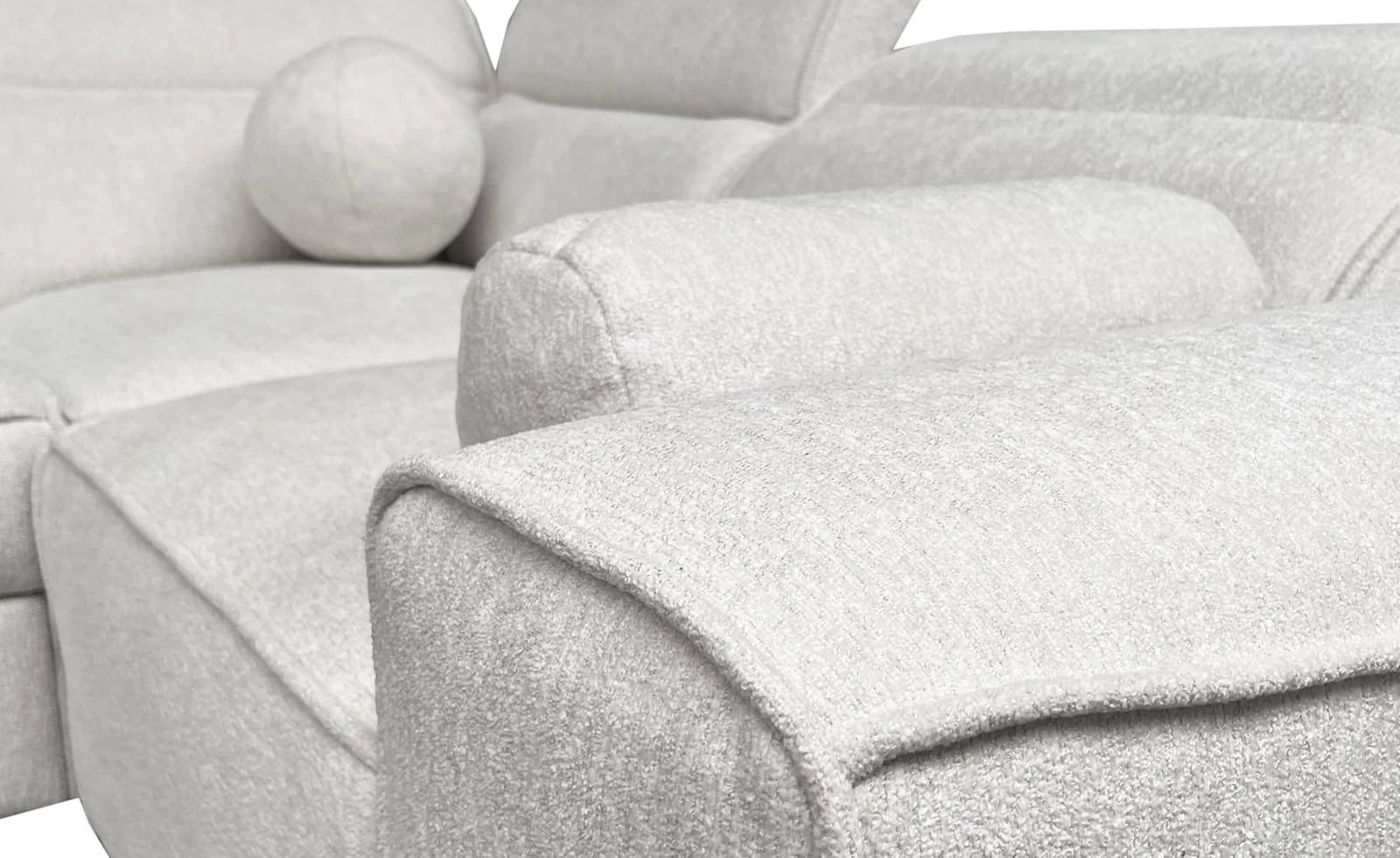 Tčalounická tkanina Toro se vyznačuje tím, že kombinací boucle a žinylková příze, který dává čalounická tkanina jedinečný, ušlechtilý vzhled. Materiál je nejen estetický, ale také.. mimořádně měkký. Povrch příjemný na dotek poskytuje pohodlí a zároveň dodává jedinečný, exkluzivní charakter. Tkanina je zpomalovač hoření, a také vykazuje vysokou odolnost proti oděru. Čalounická tkanina Toro se vyznačuje také tím, že vysokou odolností proti vyblednutí což je ideální pro velmi slunné interiéry. Díky tomu bude roh dlouho vypadat esteticky a elegantně. Rohová jednotka je vyrobena z vysoce kvalitních materiálů, které jsou odolné vůči vnějším vlivům, jako je čalounění nábytku a různé druhy nárazů.