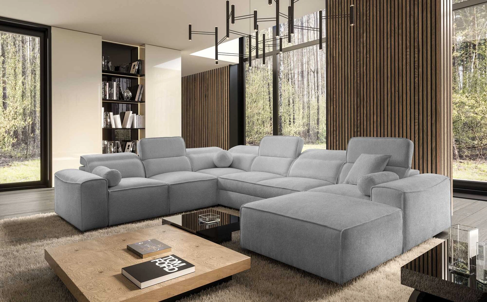Rohová pohovka Viano VIII ve světle šedé barvě je zajímavě vypadající kus nábytku s elegantní povrchovou úpravou.