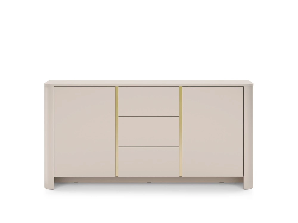 Komoda Bari 168 cm béžová moderní designová komoda do obývacího pokoje oválného tvaru poutavé zlaté doplňky