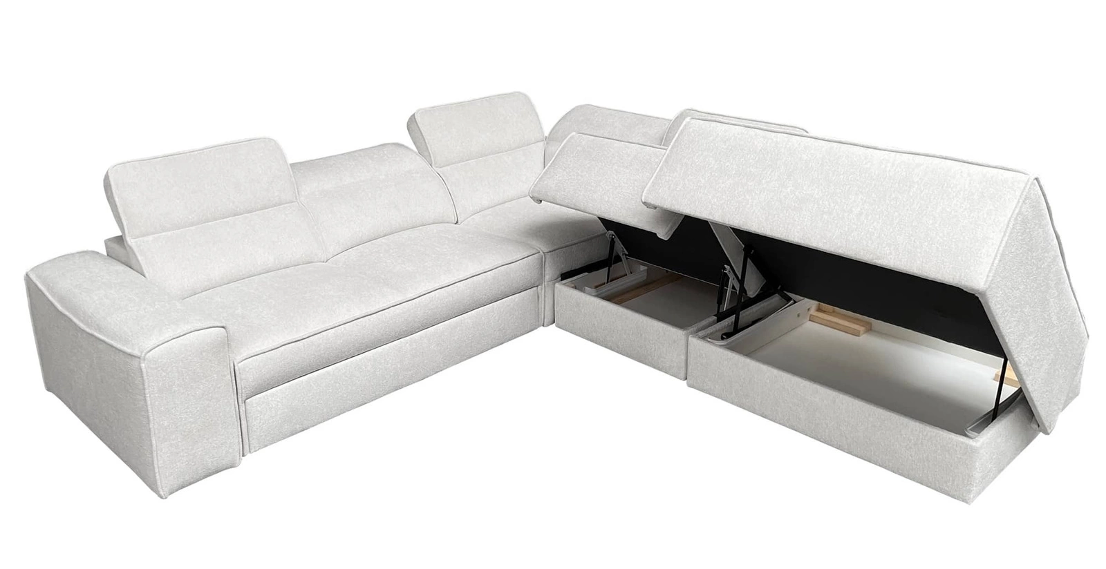 Narożnik z pojemnikiem na pościel Nowoczesny narożnik rozkładany