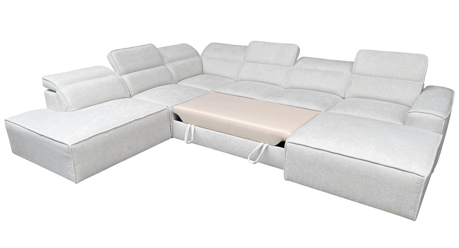 Mezi další vlastnosti tohoto nábytku, které ocení všichni uživatelé, patří až tři nádoby na lůžkoviny, nastavitelné opěrky hlavy, široké područky a ozdobné polštáře různých tvarů.
