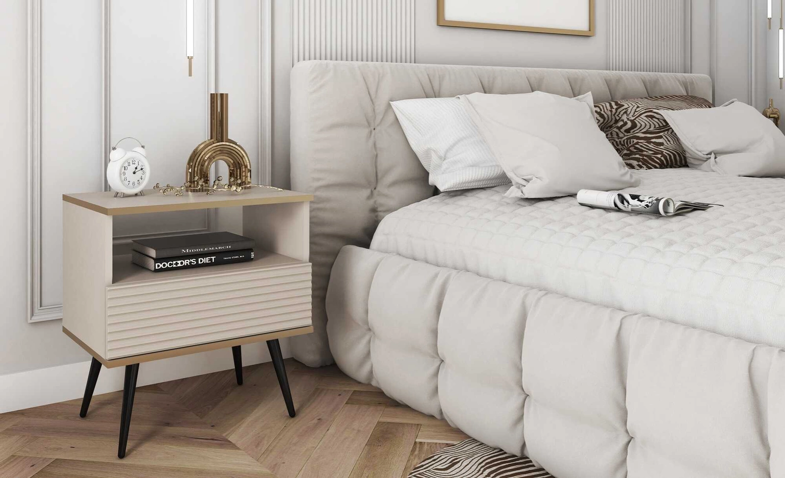 Szafka nocna do sypialni Luxury w kolorze beżowym Szafka nocna z szufladą