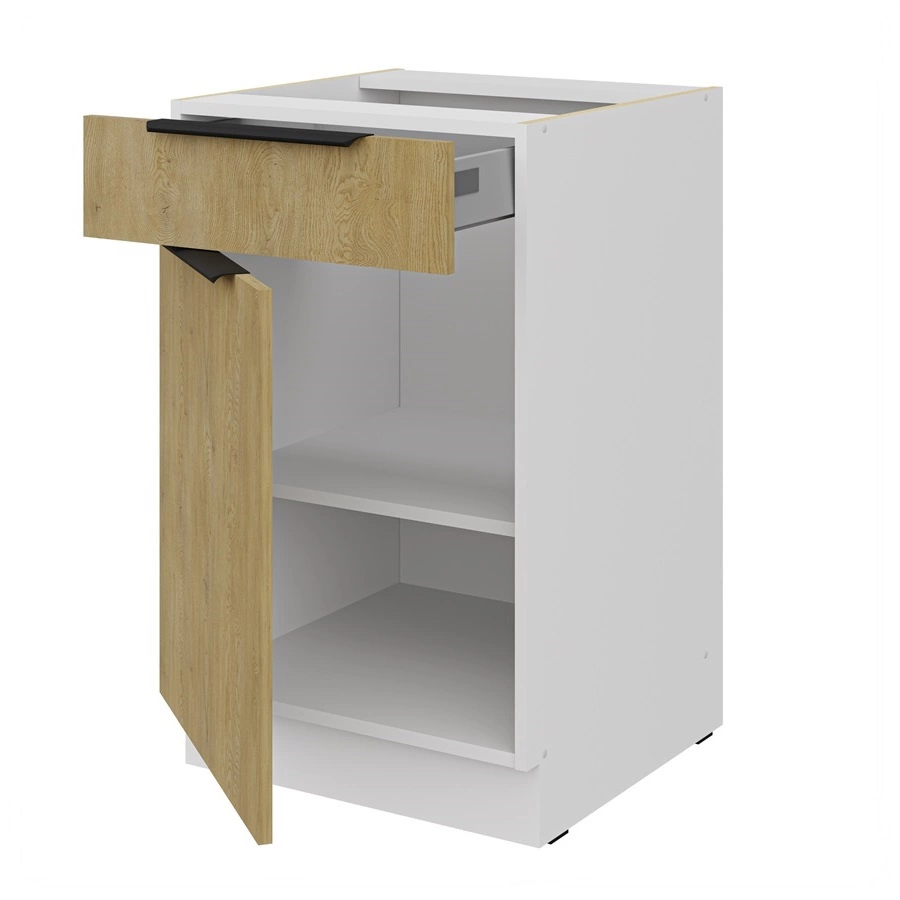 Stojící kuchyňská skříňka se zásuvkou a policí Cremona 50 D 1F 1S BB kovové hrany úchytek skříňka odolná proti vlhkosti a poškození