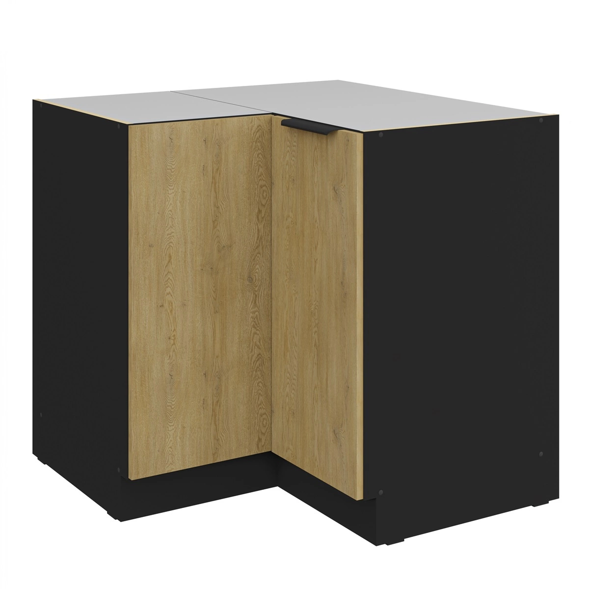 Stojící rohová kuchyňská skříňka Crotone v barvě černá / dub cremona patří do kategorie modulárního kuchyňského nábytku, ze kterého lze vytvořit libovolnou kombinaci.