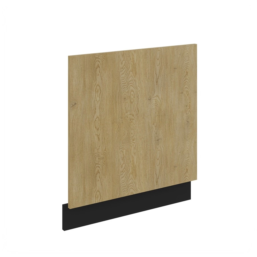 Přední část myčky Crotone v barvě dub cremona / černá z laminované desky.