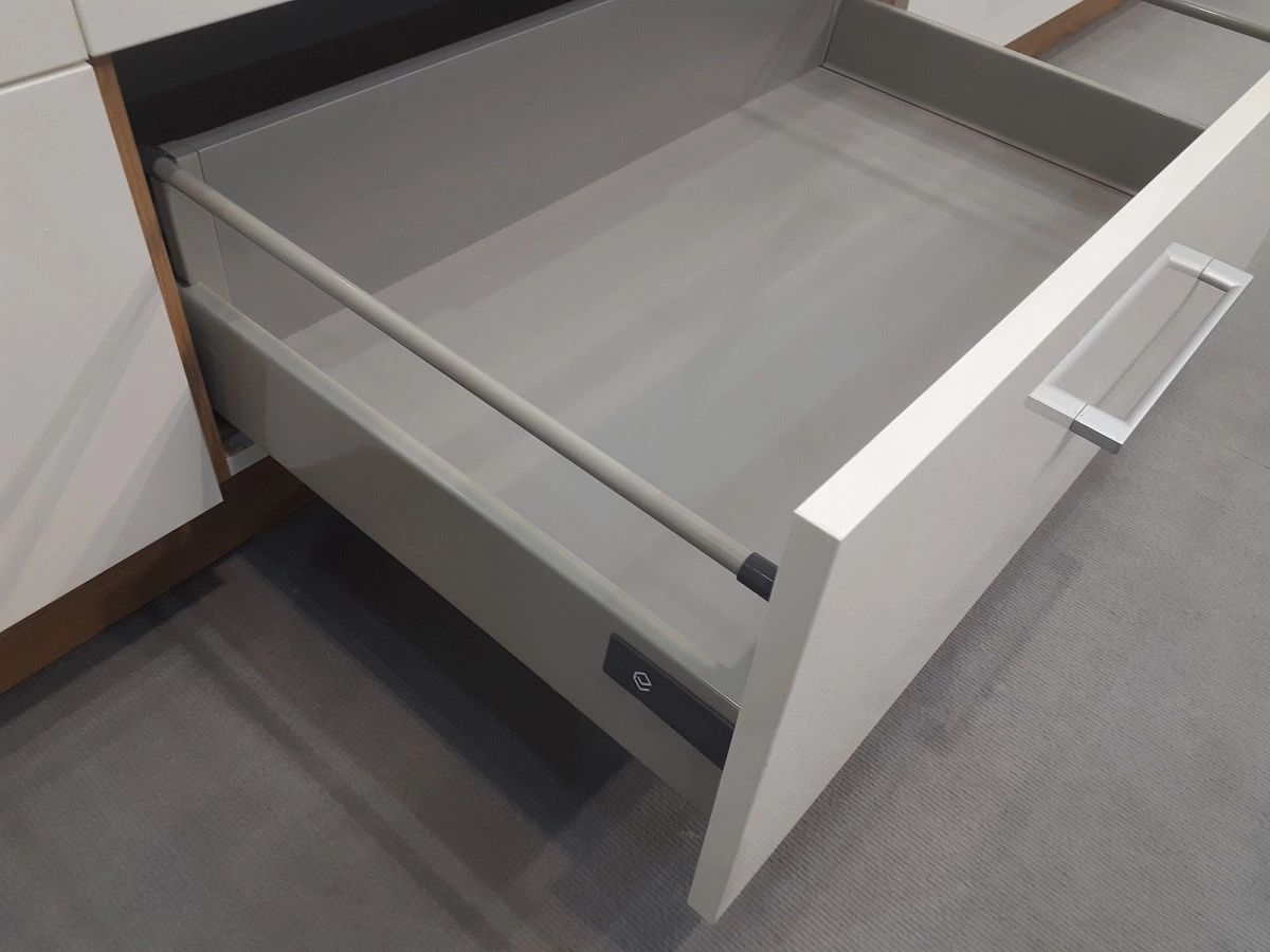 Pohodlí při každodenním používání zajišťují zásuvky a závěsy s systémem tichého dovírání, které zaručují plynulý a prakticky tichý provoz. Zásuvky vyrobeno pomocí technologie Prémiový box. Zásuvky Premium Box se vyznačují zvýšená odolnost, aby se kuchyňské skříňky mohly naplnit kuchyňským náčiním a příslušenstvím až po okraj. Police nejsou k tělu skříně přišroubovány, takže můžete upravit jejich polohu nebo je vysunout, abyste uvolnili místo pro vysoké předměty. Kuchyňské skříňky jsou vybaveny nastavitelnými nožičkami, které zajišťují stabilní umístění skříní. Dveře jsou univerzální a lze je namontovat na vpravo nebo na vlevo webové stránky. Špičkové kuchyňské skříňky jsou vybaveny systémem zavěšení na univerzální montážní lištu.