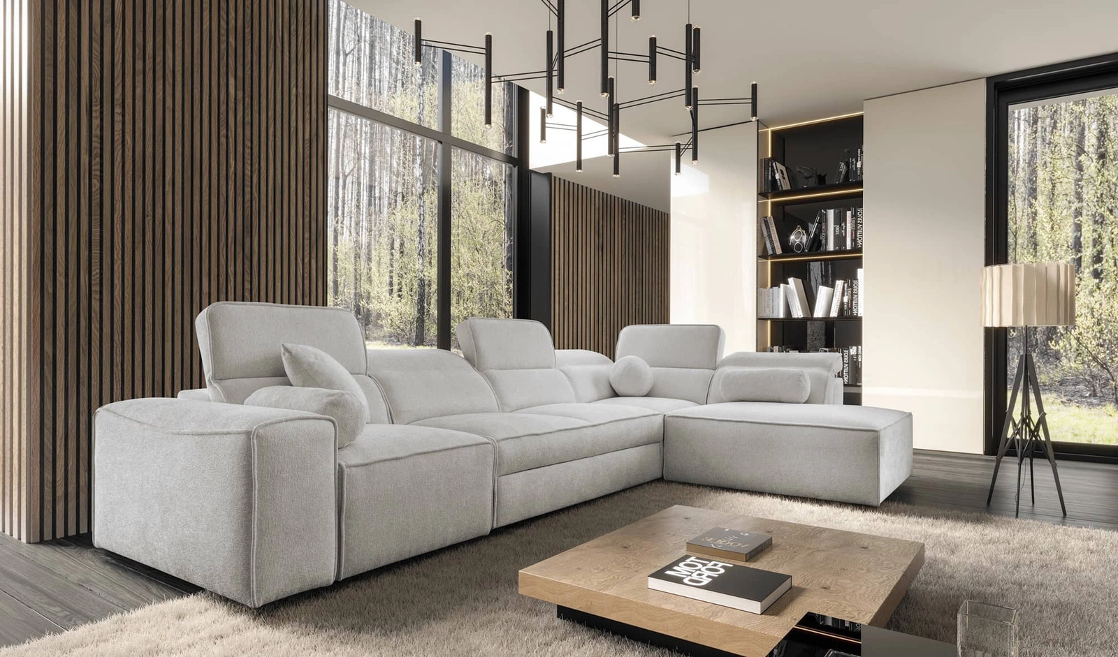 Rohová sedací souprava s funkcí spaní Viano XI šedý jasan pravý roh moderní a stylová s nastavitelnými opěrkami hlavy dekorativní polštáře