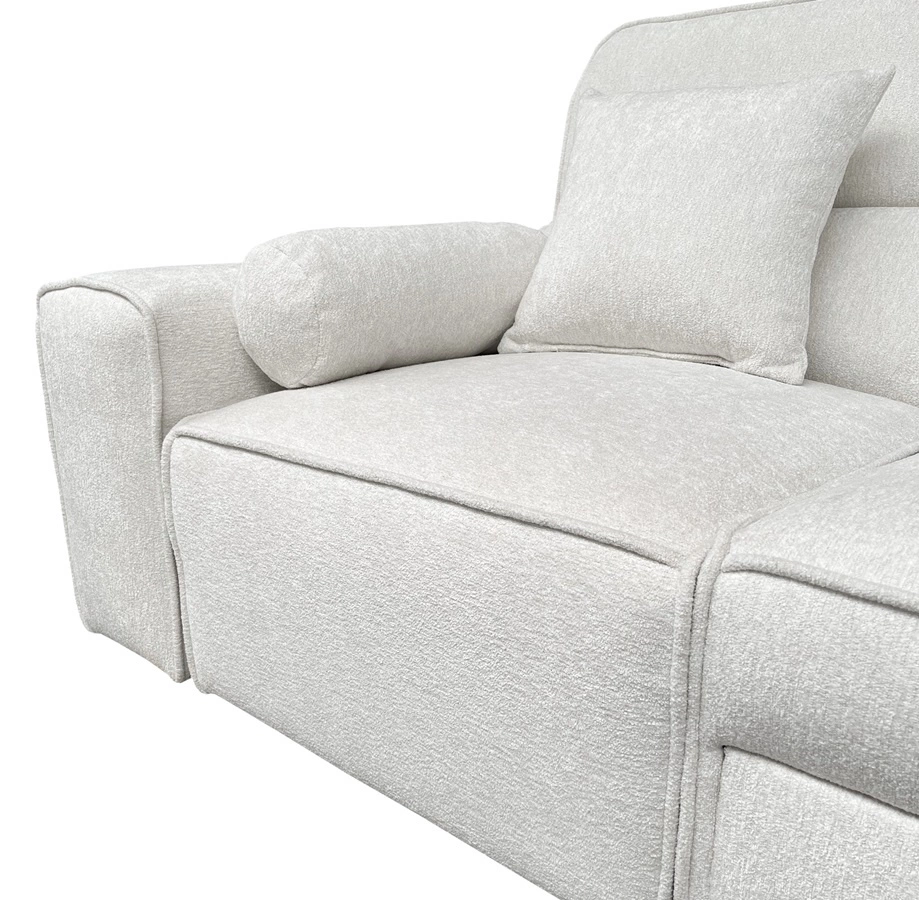 Tčalounická tkanina Toro se vyznačuje tím, že kombinací boucle a žinylková příze, který dává čalounická tkanina jedinečný, ušlechtilý vzhled. Materiál je nejen estetický, ale také.. mimořádně měkký. Povrch příjemný na dotek poskytuje pohodlí a zároveň dodává jedinečný, exkluzivní charakter. Tkanina je zpomalovač hoření, a také vykazuje vysokou odolnost proti oděru. Čalounický materiál Toro se vyznačuje také tím, že vysokou odolností proti vyblednutí což je ideální pro velmi slunné interiéry. Díky tomu bude roh dlouho vypadat esteticky a elegantně. Rohová jednotka je vyrobena z vysoce kvalitních materiálů, které jsou odolné vůči vnějším vlivům, jako je čalounění nábytku a různé druhy nárazů.