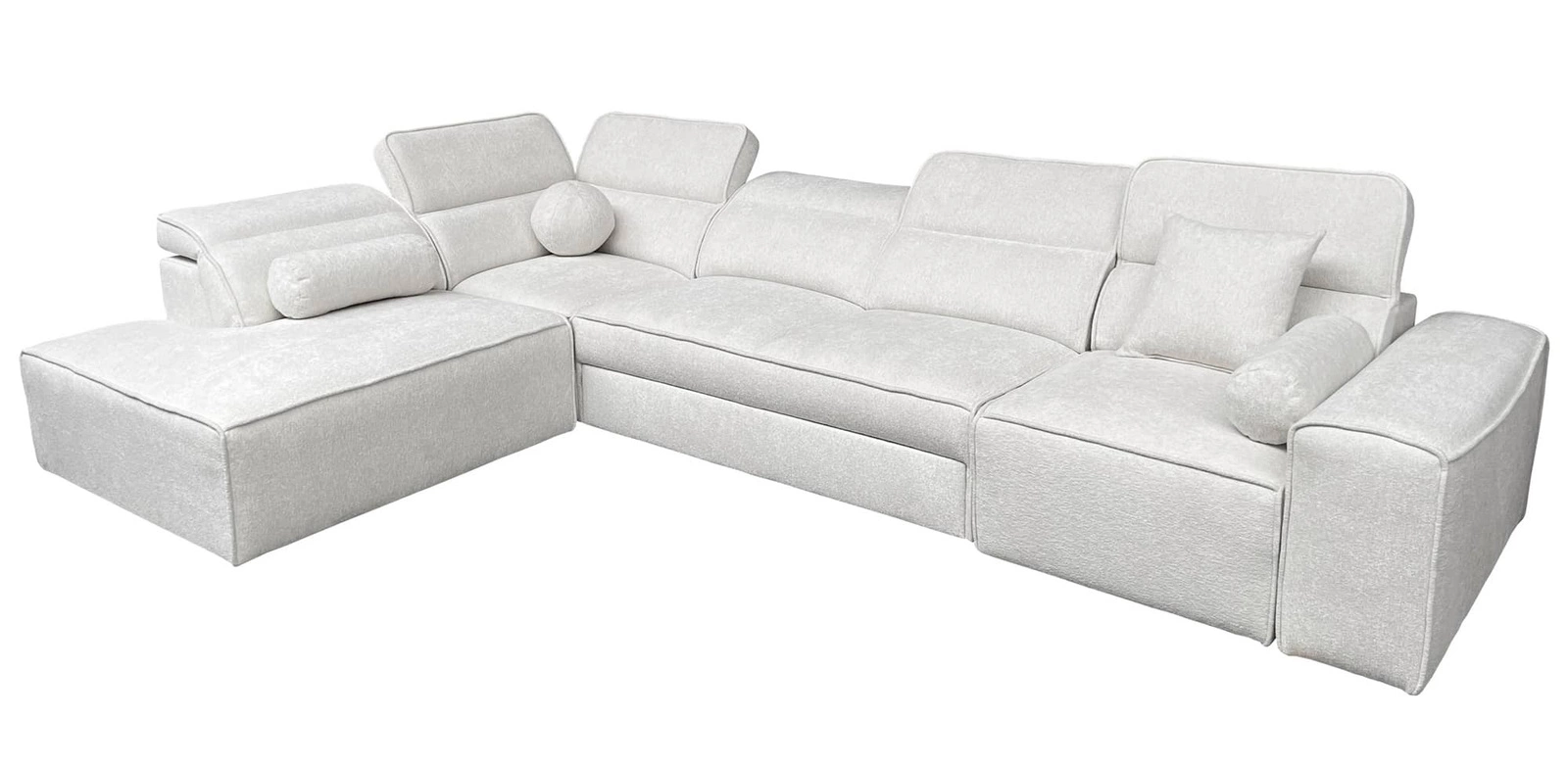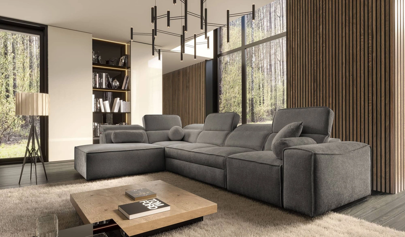 Rohová sedací souprava s funkcí spaní Viano XI šedá levá módní a stylová rohová sedací souprava s nastavitelnými opěrkami hlavy dekorativními polštáři