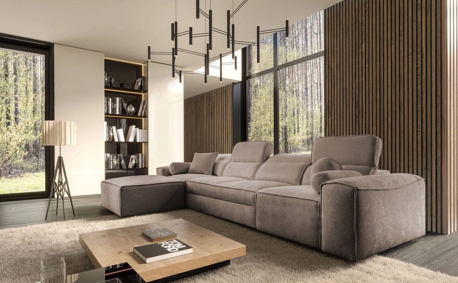 Podrobnosti o moderní rohové pohovce s funkcí spaní Viano