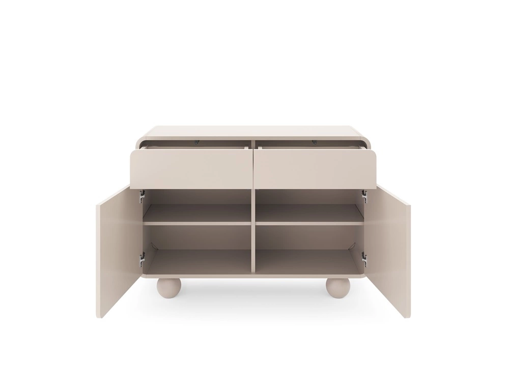 Komoda se zásuvkami Bion 108 cm béžová Designová komoda se zaoblenými tvary Originální kulovité nohy upoutají pozornost