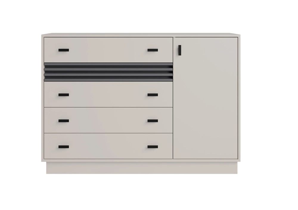 Nábytková sestava Estan je ideální volbou pro milovníky moderního uspořádání s elegantním charakterem, pro které je k dispozici široká škála nábytku funkčnosti nábytek. Fronty v béžová s kašmírovým odstínem jsou členěny vložkami v antracitové barvě antracitová. Stylovým doplňkem čelních ploch jsou kovové úchyty v černé barvě, které kromě své primární funkce dodávají nábytku jedinečný styl. Zásuvky v knihovnách, komodách a výsuvných skříňkách RTV na kuličkových ložiskových pojezdech.