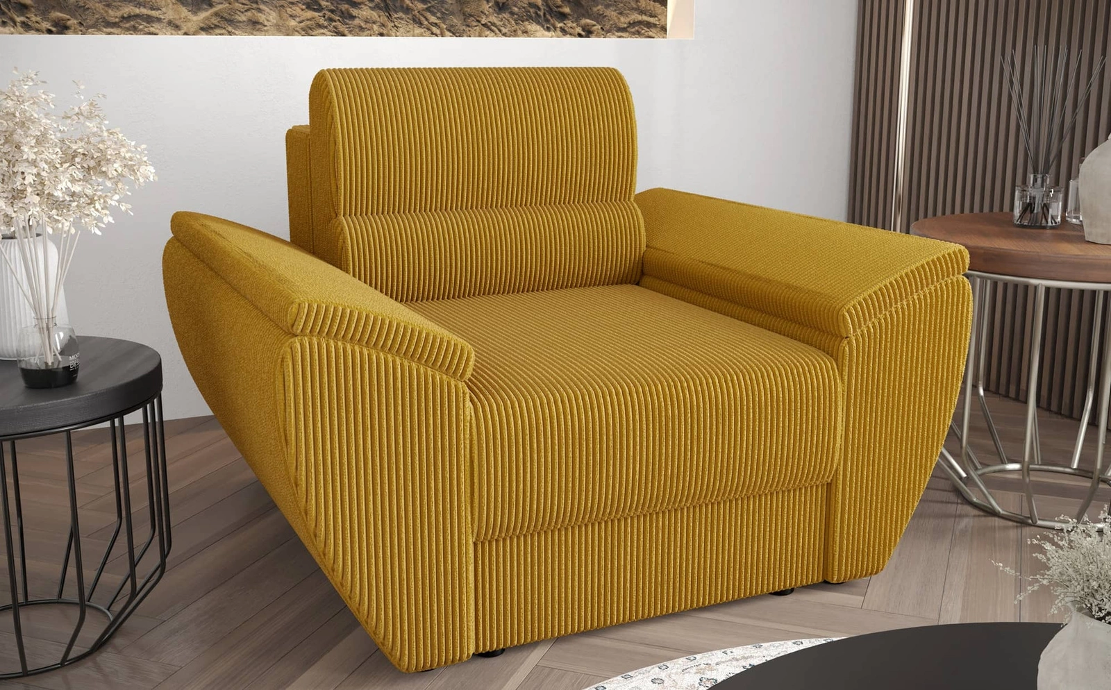 Křeslo Fogu v medové barvě je stylový kus nábytku, který promění vzhled každého interiéru.