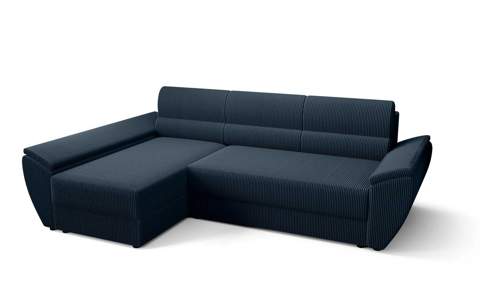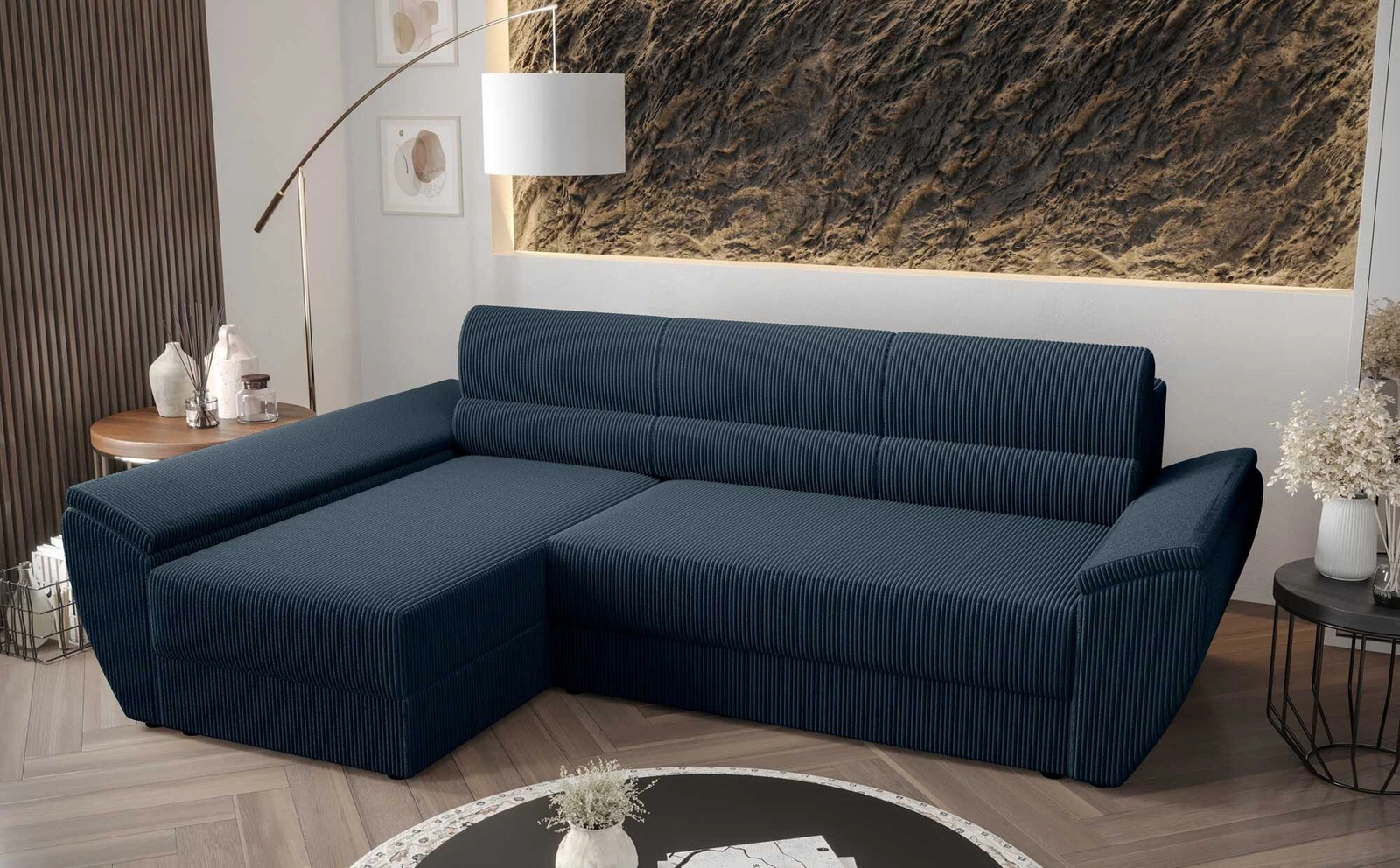 Rohová sedací souprava s funkcí spaní Fogu III modrá levá stylová rohová sedací souprava s područkami kontejner na lůžkoviny manšestrová látka