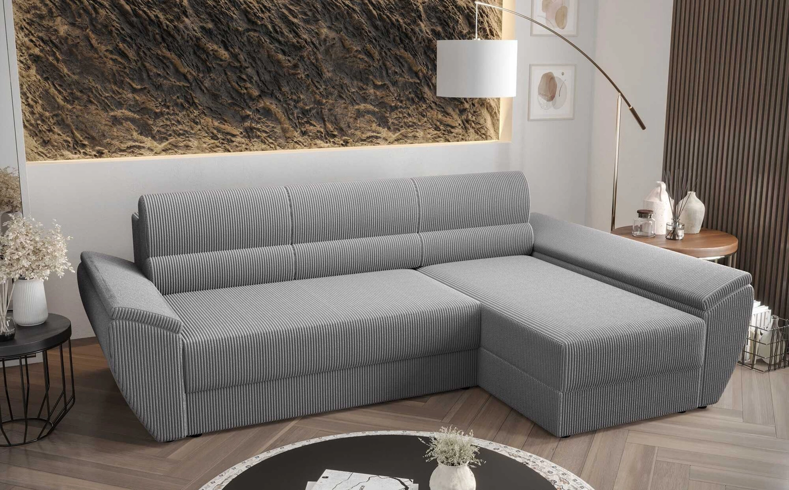Trojrozměrné manšestrová tkanina s výrazným a silným žebrováním dodává zvláštní charakter a jedinečnou krásu. Tkanina je velmi měkká a přesto pevná a robustní. Čalounická tkanina Poso je odolnost proti oděru, a také snadno se udržuje v čistotě. Díky tomu bude polohovací roh Fogu III vypadat esteticky a elegantně po dlouhou dobu. Rohová sedací souprava s funkcí každodenního spaní je vyrobena z vysoce kvalitních materiálů, které jsou odolné vůči vnějším vlivům, jako je čalounění nábytku a různé druhy nárazů.