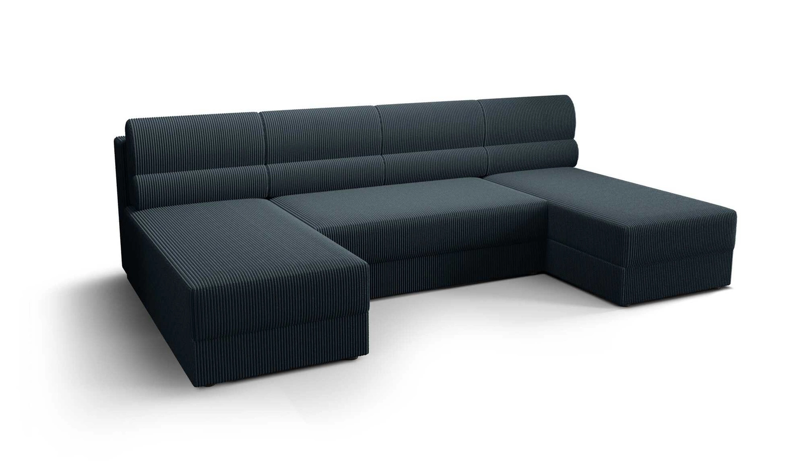- Rohová sedací souprava Fogu do U s funkcí spaní je moderní a stylový kus nábytku v minimalistickém provedení. Nábytek je vybaven kontejnerem na lůžkoviny a je potažen měkkou a odolnou manšestrovou látkou s výraznými a hustými pruhy.