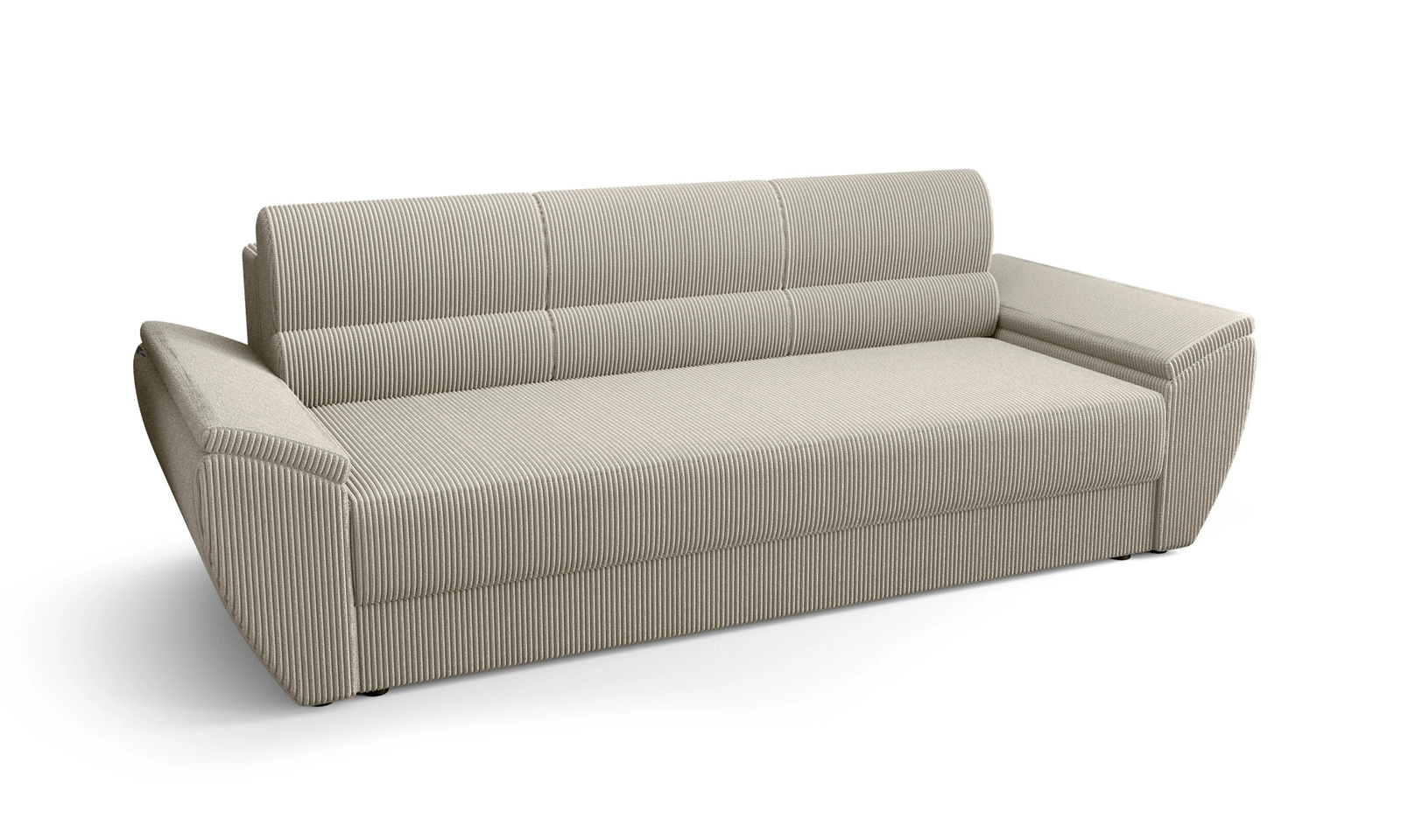 • Pohovka Fogu Bis se skvěle hodí do moderních interiérů a vytvoří pohodlnou odpočinkovou zónu. Měkká manšestrová tkanina s výraznými pruhy dodává jedinečný vzhled. Další výhodou pohovky je snadno použitelná funkce spaní.