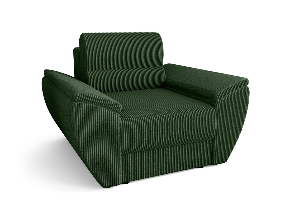 Křeslo Fogu zelené moderní design pohodlné křeslo do obývacího pokoje manšestrová látka s výraznými pruhy široké područky