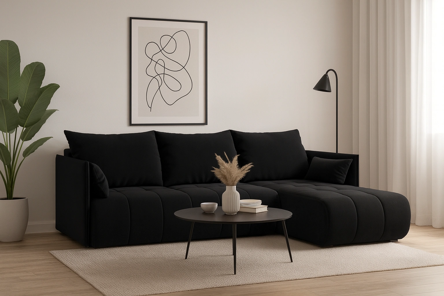 Rohová pohovka Selva v černé barvě je atraktivním kusem nábytku, který si snadno najde místo v každé místnosti vašeho domova.