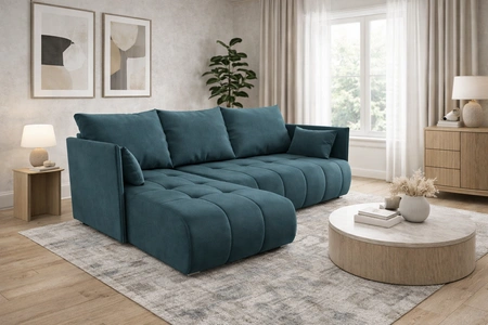 Tkanina Paros se vyznačuje vysokou odolností proti vyblednutí, což je ideální pro velmi slunné interiéry. Pohodlné čalounění s plyšový povrch s jemným chlupem dává nábytku jemný, stínovaný efekt, která se mění s každým dotykem. Tkanina je také snadno se udržuje v čistotě. Další výhodou tkaniny Paros je vysoká odolnost proti roztřepení a oděru. Díky tomu bude rohová skládací skříň Selva vypadat esteticky a elegantně po dlouhou dobu. Rohová sedací souprava s funkcí každodenního spaní je vyrobena z vysoce kvalitních materiálů, které jsou odolné vůči vnějším vlivům, jako je čalounění nábytku a různé druhy nárazů.