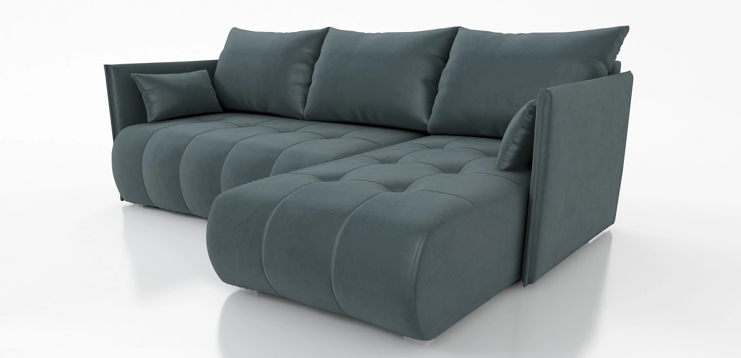 Podrobnosti o moderní rohové pohovce s funkcí spaní Selva