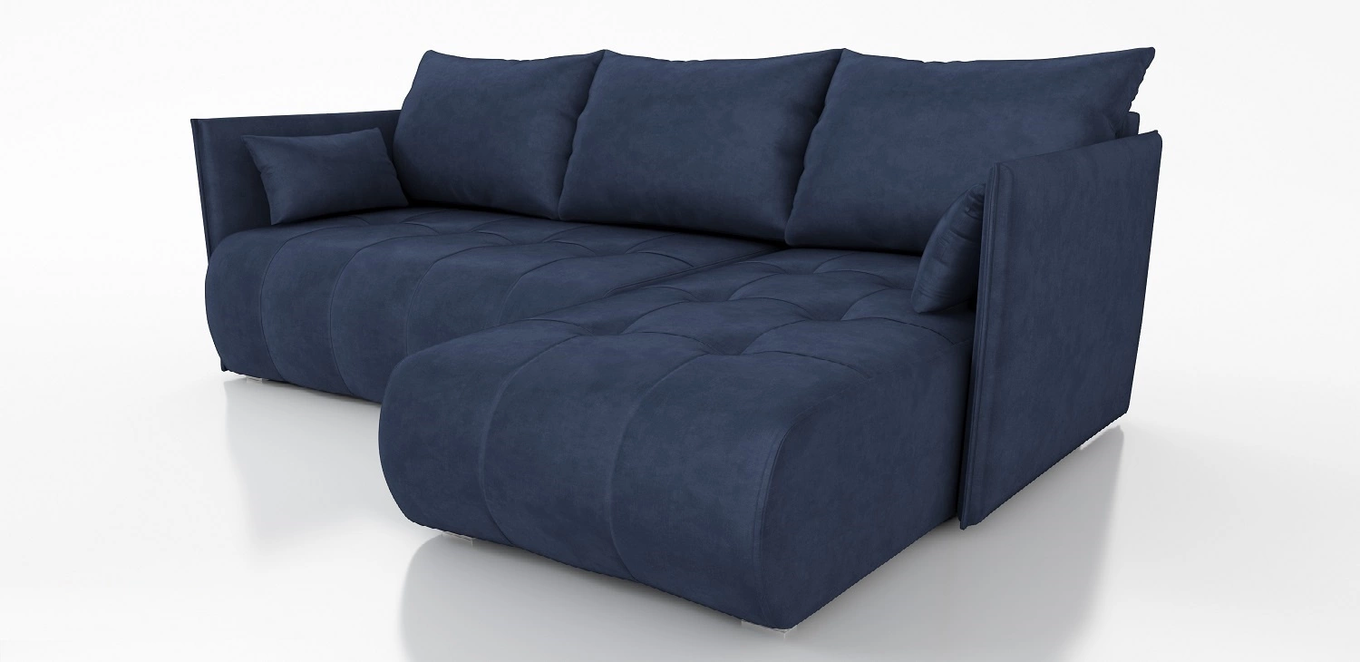 Rohová pohovka Selva v modré barvě je atraktivním kusem nábytku, který si snadno najde místo v každé místnosti vašeho domova.