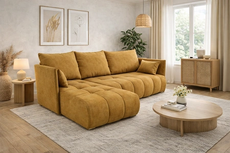 Rohová pohovka Selva v medové barvě je atraktivním kusem nábytku, který snadno najde uplatnění v každé místnosti vašeho domova.