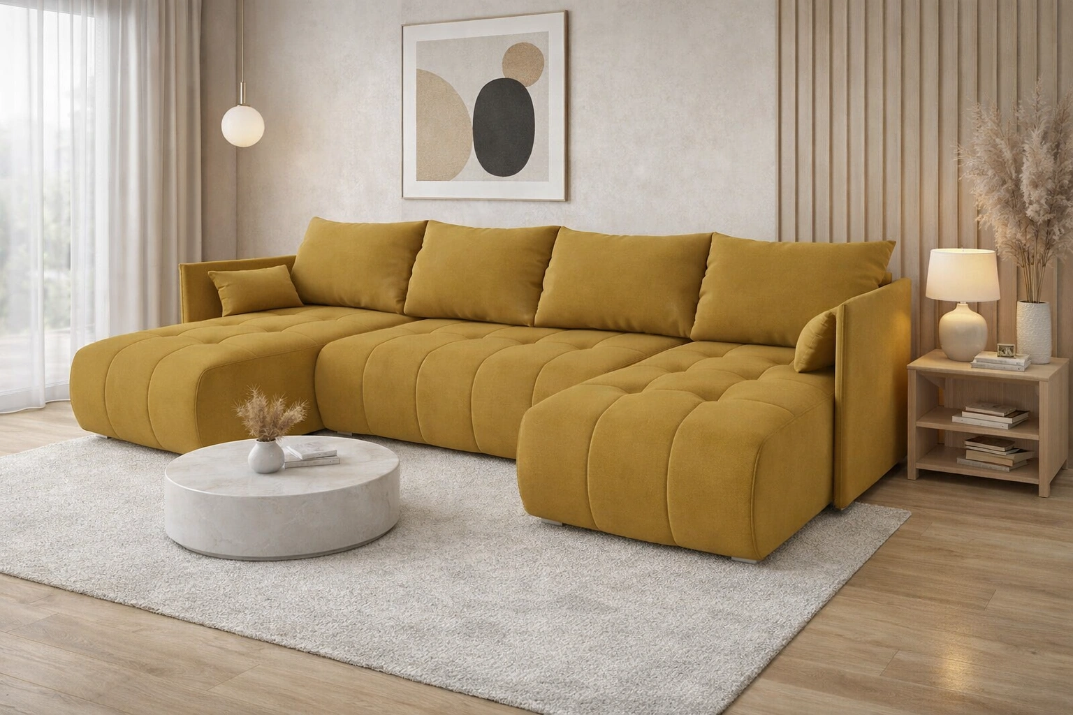 Rohová jednotka Selva U v hořčici je atraktivním kusem nábytku, který snadno najde uplatnění v každé místnosti vašeho domova.