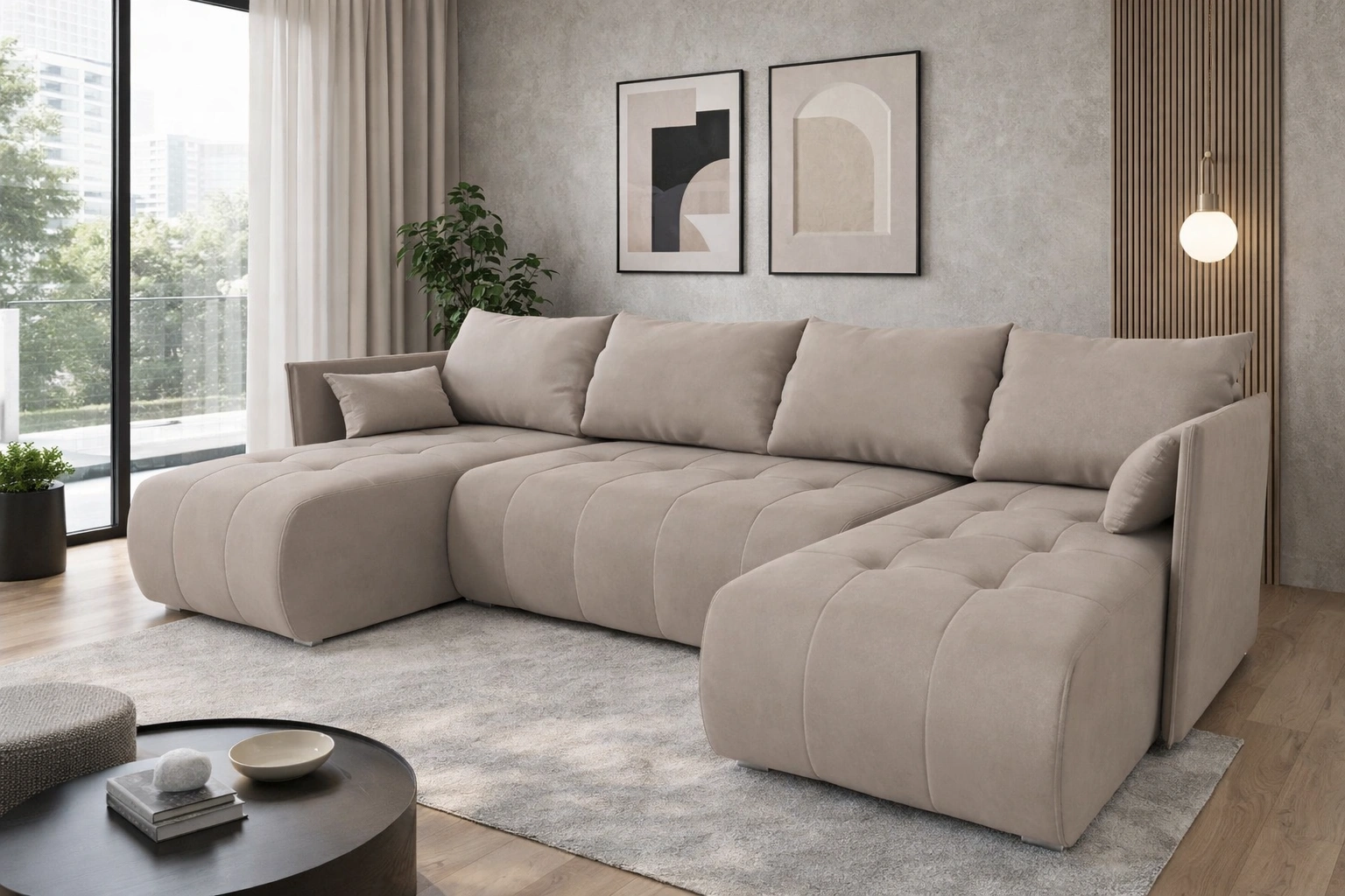 Tkanina Paros se vyznačuje vysokou odolností proti vyblednutí, což je ideální pro velmi slunné interiéry. Pohodlné čalounění s plyšový povrch s jemným chlupem dává nábytku jemný, stínovaný efekt, která se mění s každým dotykem. Tkanina je také snadno se udržuje v čistotě. Další výhodou tkaniny Paros je vysoká odolnost proti roztřepení a oděru. Díky tomu bude rohová skládací skříň Selva U vypadat esteticky a elegantně po dlouhou dobu. Rohová sedací souprava s funkcí každodenního spaní je vyrobena z vysoce kvalitních materiálů, které jsou odolné vůči vnějším vlivům, jako je čalounění nábytku a různé druhy nárazů.