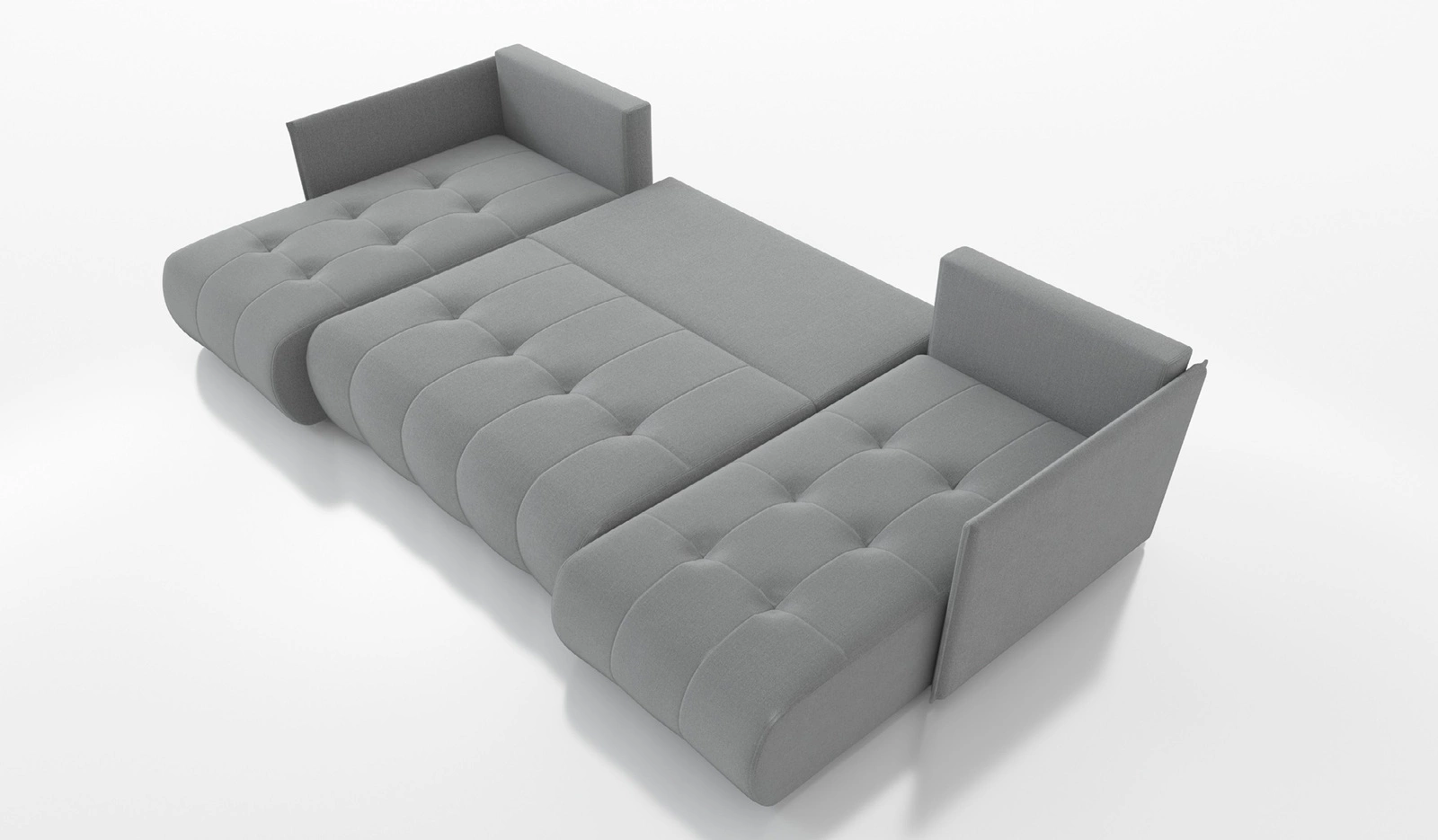 Díky svým rozměrům a široké funkčnosti je rohová pohovka s funkcí spaní ideální jako rohová pohovka do obývacího pokoje nebo jako rozkládací rohová pohovka do pokoje pro hosty. Rohová pohovka s funkcí spaní je také skvělou alternativou k posteli v pokoji pokoj pro mladé. Šířka rohu 292 cm, výška 88 cm a hloubka 152 cm. Spací plocha rohové jednotky je 140x280 cm. Výška sedadla nábytku je 40 cm, a výška opěradla je 48 cm. Vlnité pružiny a polyuretanová pěna T28 je materiál, z něhož je vyrobeno sedadlo rohu. Soft opěrné polštáře zajistí vysokou úroveň pohodlí při každodenním odpočinku, což oceníte vy i vaši hosté, kteří se na tuto jedinečnou rohovou sedačku posadí.